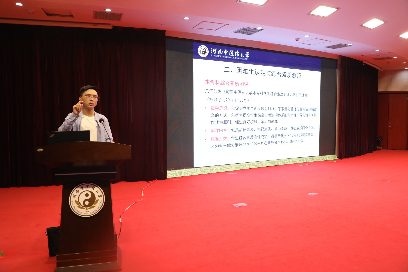讲座中,谭老师首先从工作理念与整体构架、困难认定与综合素质测评、资助项目介绍、资助工作要求和政策内容等方面进行了讲解,带领学生全面学习了解资助贷款政策。并对家庭经济困难认定、综合素质测评、奖助学金评定等工作的流程、材料填写、系统使用进行了培训。随后,谭老师详细介绍了高校贷款的政策、审批程序、还款要求、违约后果等内容,强调同学们要按期还款,培养自立自强、诚实守信、知恩感恩的良好品质。