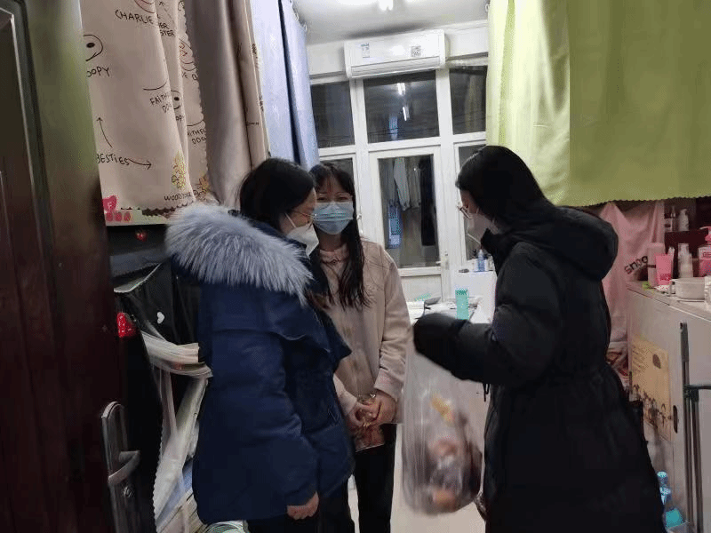 走访期间,领导老师们与学生们亲切交谈,询问同学们的生活情况与学习情况,并为学生带来慰问品。马慧玲代表学院向同学们表达关心与关爱,细心提醒同学们要勤换洗衣服、勤晾晒被褥、勤开窗通风,做好每日健康打卡工作。同时提醒学生在返乡过程中要时刻注意个人防护,及时与辅导员老师沟通,时刻注意个人安全,做自己健康的第一责任人,老师时刻与大家同在。