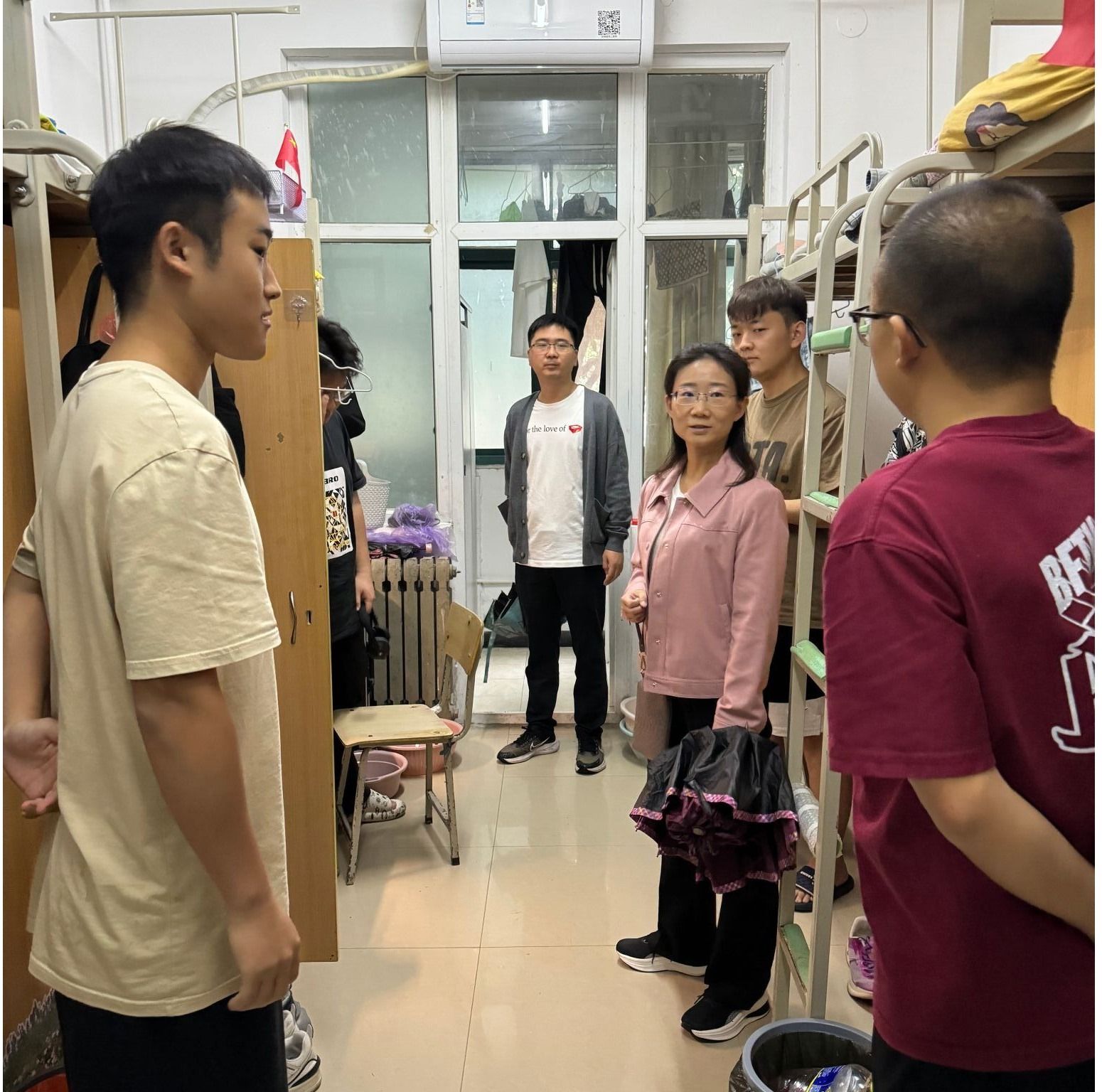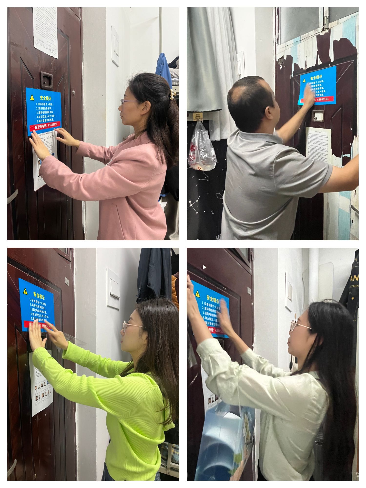 9月30日,学院党委副书记杨雪带领学院全体辅导员对学生宿舍进行了安全大检查。学院各位老师深入学生宿舍,对消防安全、用电安全、宿舍卫生状况等方面进行了细致的排查。在检查过程中,老师们与同学一起在宿舍张贴安全提示标识,进行现场安全教育,强调安全用电、防火防盗、防范网络诈骗等重要事项。