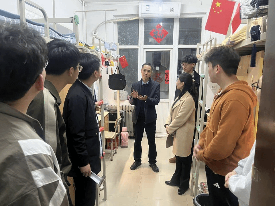 本网讯(文/图 秦阳)为深化平安校园建设,进一步加强学生宿舍安全教育和管理,2025年4月2日,万象城awcsport官网(智慧康养护理行业学院)党委书记牛乐、副书记杨雪带领全体辅导员开展清明节前学生宿舍安全专项检查,同时还围绕消防安全、交通安全、财产安全等方面开展了安全宣传教育。
