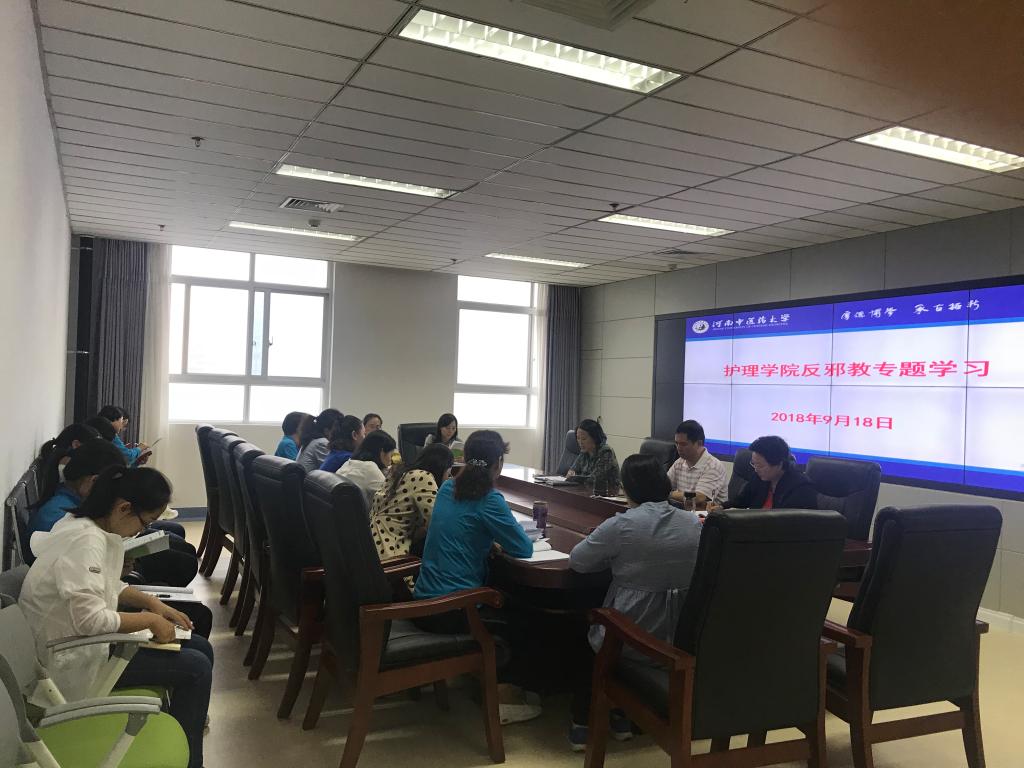 为了严防邪教组织在万象城师生中渗透蔓延,万象城awcsport官网于2018年9月18日下午在实训楼1015会议室开展反邪教专题学习。学习由杨英豪院长主持,学院全体教职工及学生党员代表参加了此次专题学习。