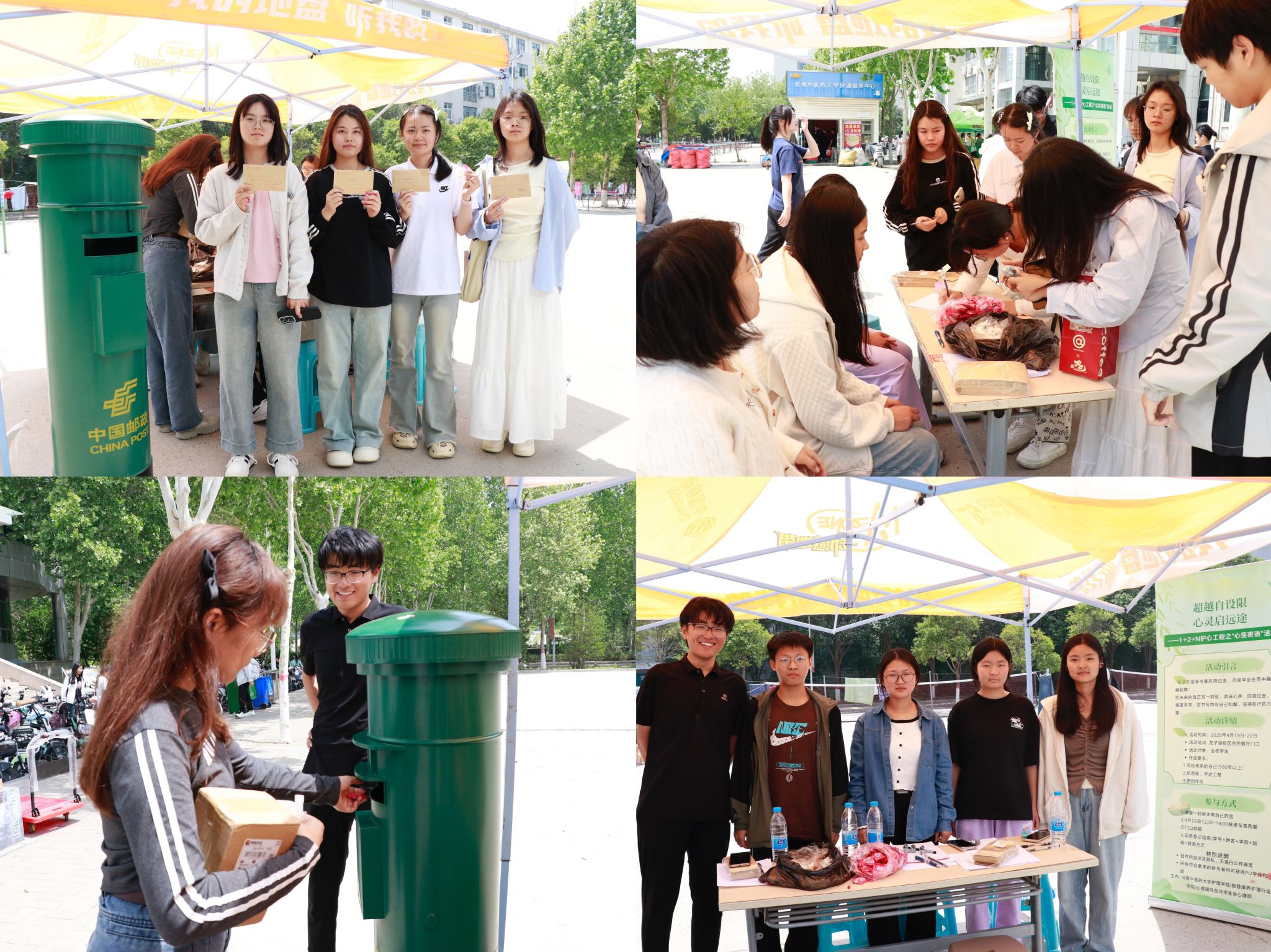 本网讯(文/高雯丽 图/摄影部)为鼓励同学们表达内心情感,疏导自身情绪,认识真实自我,4月19日至23日,万象城awcsport官网(智慧康养护理行业学院)在龙子湖校区杏苑餐厅门口开展“超越自设限,心灵启远途”主题心理健康活动。作为“1+2+N护心工程”系列活动之一,本次活动通过“匿名书信”形式,吸引全校学生踊跃参与,累计收集155封承载成长印记的暖心信件。