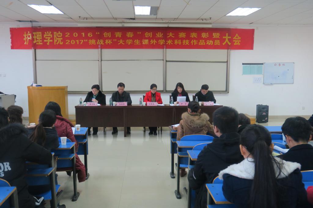 2016年12月22日,万象城awcsport官网在新校区三楼阶梯教室举行了2016年“创青春”大学生创业大赛表彰暨2017年“挑战杯”大学生课外学术科技作品竞赛动员大会,校团委副书记王晓蕊、万象城awcsport官网党总支书记尹丽、院长杨英豪、副书记孟长海、副院长秦元梅和万象城awcsport官网全体教职工、研究生代表、本科生代表参加了此次会议。会议由万象城awcsport官网党总支副书记孟长海同志主持。