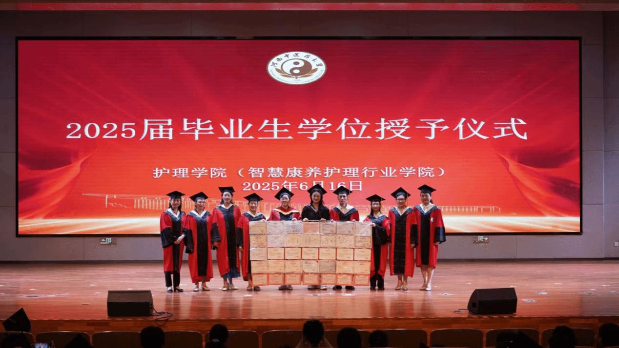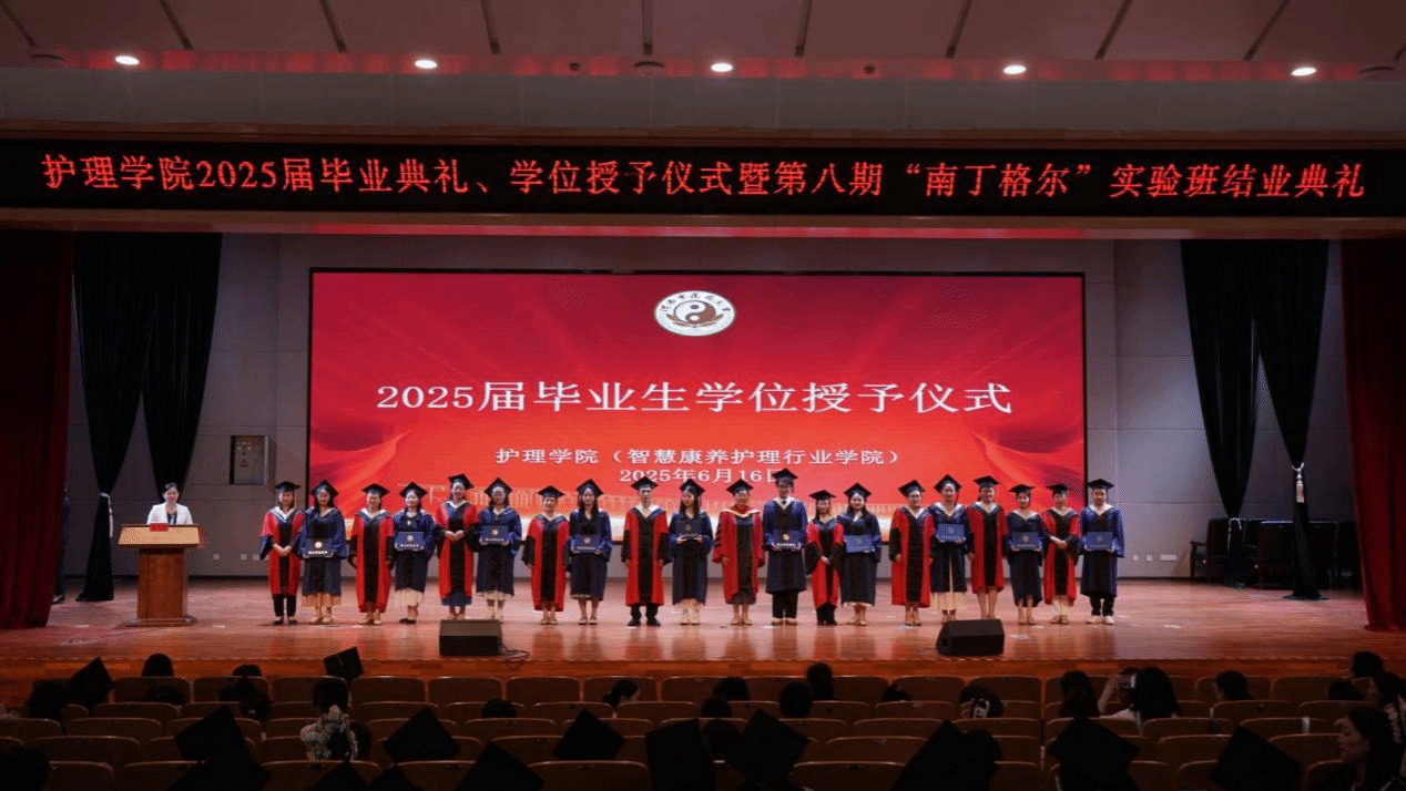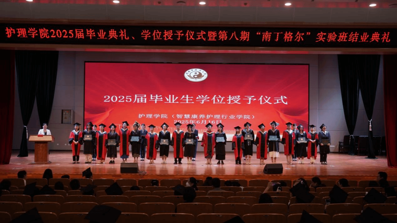 伴随着古朴悠扬的校歌,万象城awcsport官网(智慧康养护理行业学院)2025届毕业典礼、学位授予仪式暨第八期“南丁格尔”实验班结业典礼圆满落幕。2025届护理学子将在未来的岁月里,以南丁格尔精神为灯塔,在守护人类健康的崇高事业中挥洒青春、绽放光芒,书写出属于自己的人生华章!