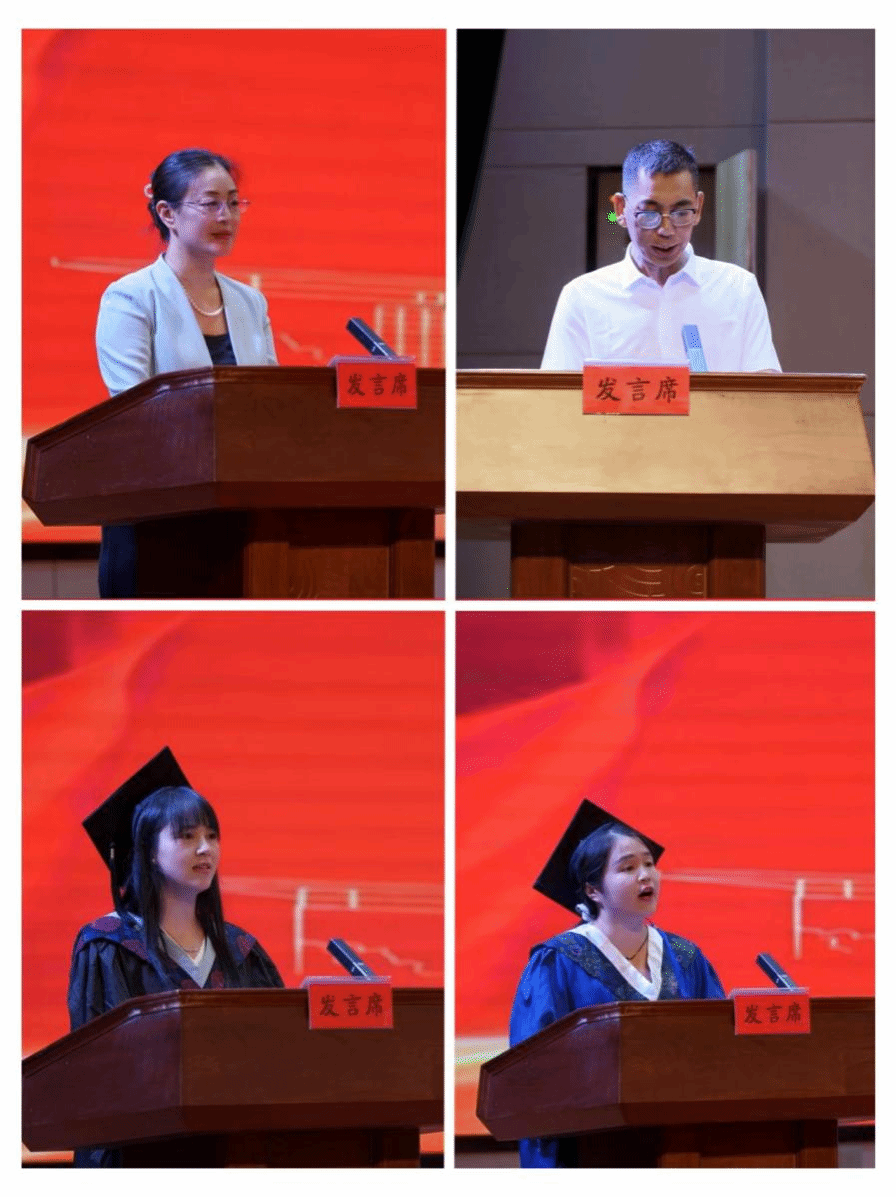 毕业生家长代表王红伟衷心感谢学校与学院提供良好的育人环境、优质的教育资源、无微不至的人文关怀,助力学生们健康生活、成长成才。教师代表井晓磊向全体2025届毕业生表达祝福,希望大家永葆探索热忱、扎根实践沃土、守护心中明灯,带着中医药的智慧和现代护理的使命,勇敢奔赴星辰大海。