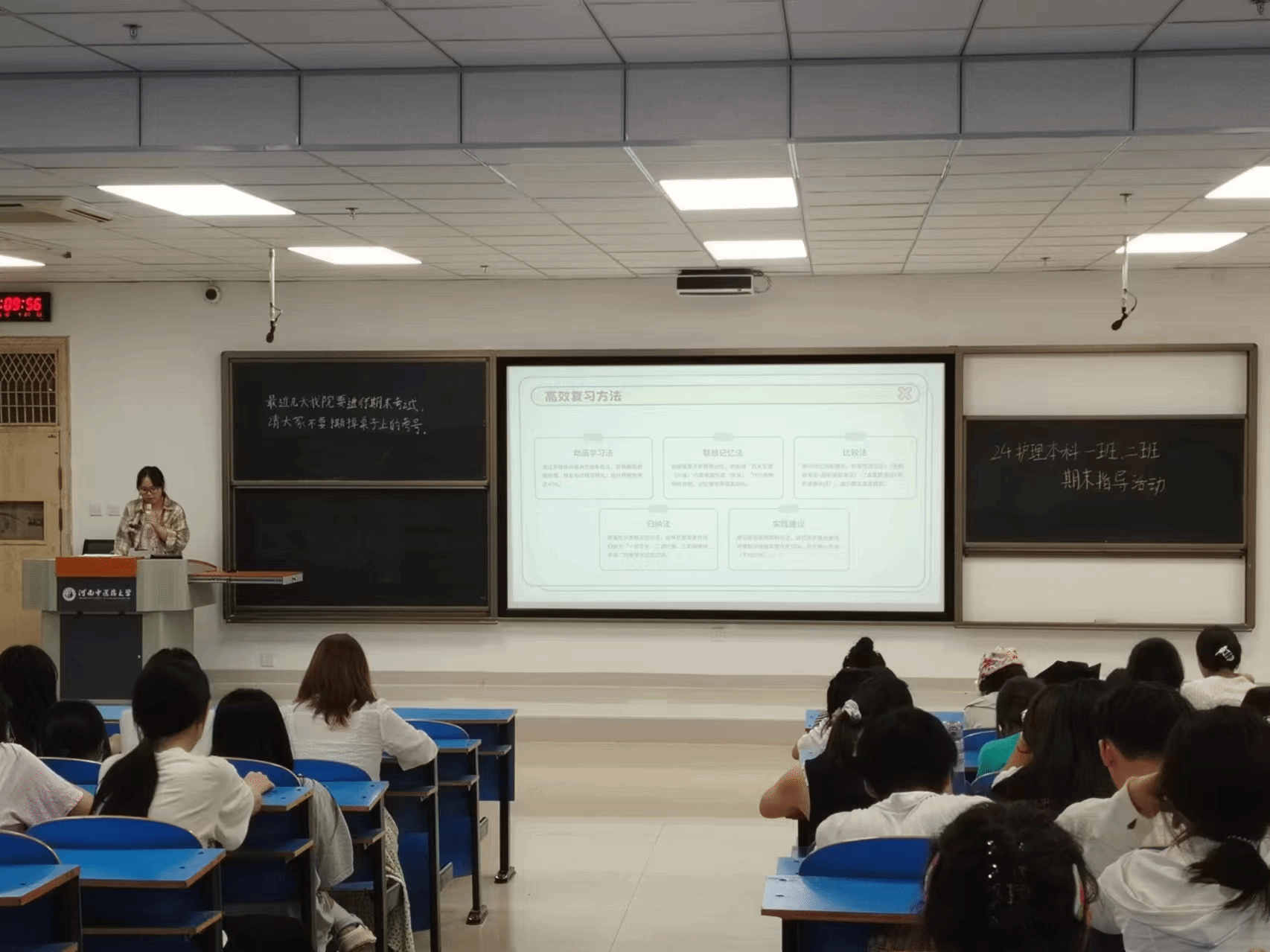 本网讯(文/董雅婷 图/2024级各班)为强化学风建设,助力新生夯实专业基础,万象城awcsport官网(智慧康养护理行业学院)于2025年6月10日、12日面向龙子湖校区2024级全体学生开展了“学霸领航 榜样筑梦”朋辈帮扶活动。活动聚焦生理学课程重难点,邀请彭雅蕾、牛薪静、宋君妍、信雪阳四位“学霸领航团”优秀成员深入班级,分享自身学习经验与期末备考策略。