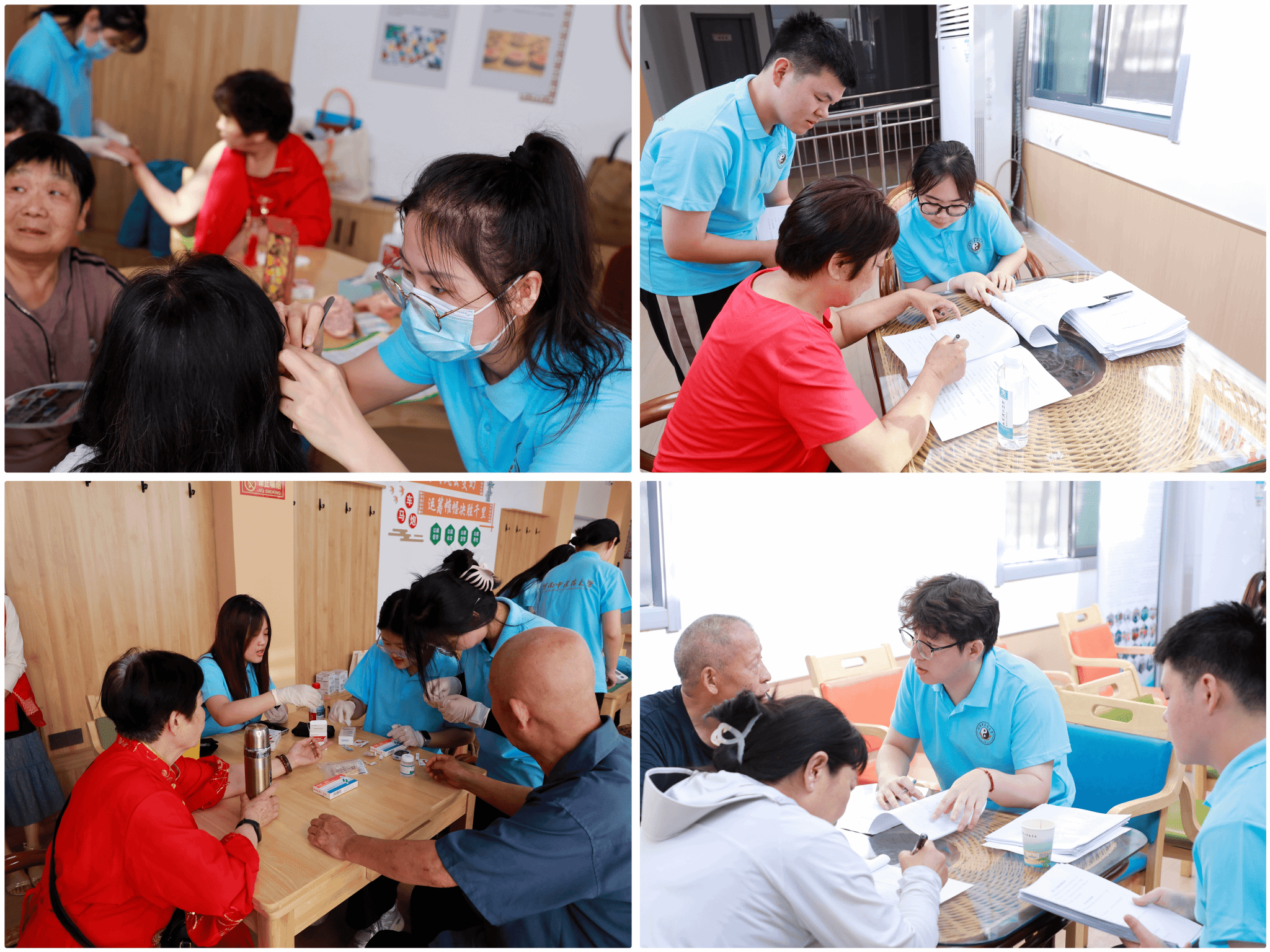 活动伊始,实践队员化身健康使者,在社区广场上带领居民习练传统养生功法八段锦,指导大家舒展筋骨,涵养身心。义诊现场,各服务点前排起长龙:在专家问诊区,坐诊专家杨雪为每位就诊者把脉问诊,详细询问既往病史和当前症状,根据个体差异制定个性化治疗方案,同时还耐心细致地讲解疾病预防、合理用药及健康生活方式等知识,帮助村民树立“未病先防”的健康理念。在基础健康检测区,队员们为居民测量血压、血糖,建立初步的健康档案,帮助村民更清晰地了解自身健康状况;在中医特色服务区,负责队员专注凝神,让居民亲身体验耳穴压豆、刮痧等中医传统养生功法的魅力;同时,问卷调查组成员们深入群众,开展了老年人心理健康与膳食营养状况的主题调研,了解体察基层民情民意。最后,带队老师秦阳开展了脑卒中健康知识宣讲,科普图文并茂、通俗易懂,将脑卒中的识别与实用的防治方法娓娓道来,对居民预防相关疾病起到了良好的指导作用。