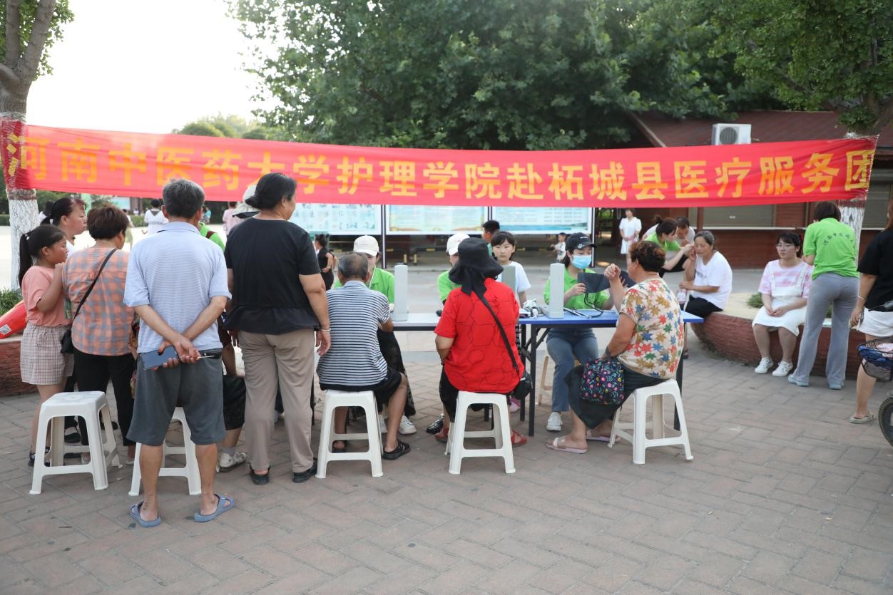 本网讯(文/苗钰 图/钟晓晴)为了响应落实“健康中国”发展规划,弘扬志愿服务精神,传播中国传统医学文化,2021年7月9日下午,万象城awcsport官网暑期“三下乡”社会实践团于柘城县千树园广场开展义诊活动。