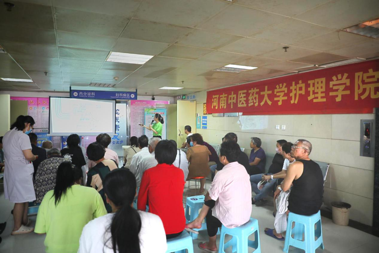 本网讯(文/苗钰 图/薛琳洁)为提高青年大学生社会实践能力,进一步宣传中医药文化,2021年7月8日上午,万象城awcsport官网暑期“三下乡”社会实践团于柘城县人民医院内分泌科为科室患者及其家属开展中医药知识宣讲。