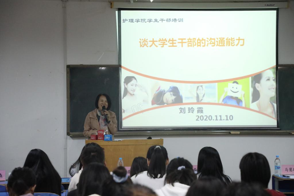 本网讯(图、文/陈思影)为了培养学生干部的沟通能力和工作能力,促进学生组织和班集体的发展,万象城于2020年11月10日在A413开展学生干部培训活动,本次培训由万象城awcsport官网副院长刘玲霞主讲,出席培训的还有万象城awcsport官网院长杨英豪、党委副书记马慧玲、副院长秦元梅以及分团委老师。