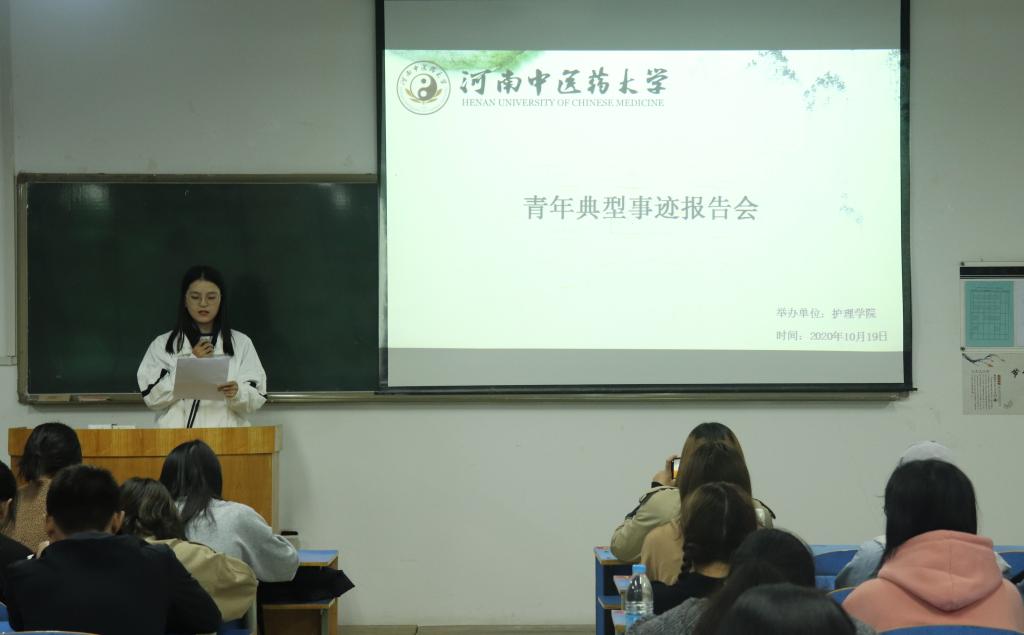 本网讯(图、文/苗钰)为助青年学子树立青年一代有理想、有责任、有担当的意识,培养勇于奉献、敢于担当的优秀品格,万象城awcsport官网于2020年10月19日晚上七点在教学楼四楼421教室开展青年典型事迹报告会。本次报告会由多位在抗疫事件中表现突出的青年们担任主讲人,参加的学生为万象城awcsport官网优秀青年代表。