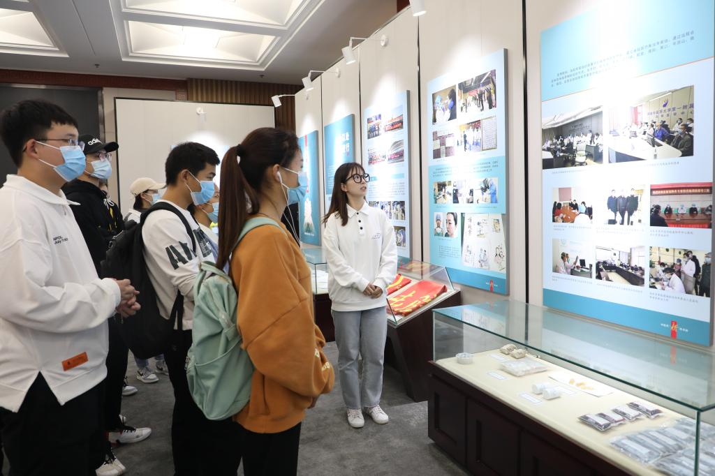 跟随着讲解员的脚步,从古代跨到今朝,从过去遥望未来。讲解员回溯到殷商时期,从我国抗疫史讲起,随后用简洁明了的话语向万象城学生介绍温病学和疫病学的各个阶段,然后顺承到现代中医抗疫史,同学们见到了医护人员的出征时的决绝,战疫时的勇敢,研制时的精心。展馆中陈列着品种繁多的中药材,这是中医药人的武器,更是中医药人的底气,是先人总结的宝藏,需要我们每一个人珍惜珍藏。那一张张鲜红色的旗帜,一个个写满祝福语的防护服,一本本意味深重的荣誉证书,这是我们战斗过的证明,足以载入人类史册,引领后世前进。生于非典,考于新冠,20级的同学们是不幸又幸运的。不幸的是有疫情的的阴云长期压制,幸运的是正是因为这次全球性的灾难,让同学们更加真切的体会到了党和国家的强大与伟大。