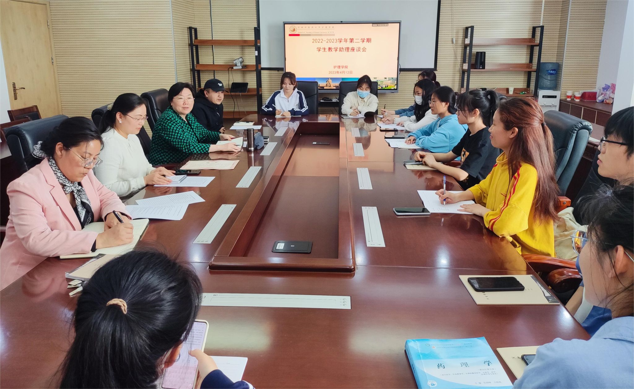 座谈会中,张琼首先向新遴选的10名学生教学助理介绍并解读了学生教学助理工作职责;秦元梅对学生教学助理提出工作要求,希望学生教学助理做好同学与学院、学校之间沟通的纽带和桥梁,做好自身管理、做好助理工作、做好沟通工作、做好解释工作、做好评教、评学工作。接着,学生教学助理们分别反馈了班级在教学、学习、生活中存在的问题,并提出很多建设性意见;2020级同学主要就混合教学中存在的问题、多种课程教学平台、考研等问题进行反馈;2021级同学主要就该学期课程设置、教考分离及部分课程授课问题进行反馈;2022级同学主要反馈了部分课程排课、教学进度问题,以及生理学、生物化学学习中存在的困难。接着,与会老师和同学就提出的问题进行了讨论,并对部分问题提出解决方案。最后,秦元梅总结,她对学生教学助理认真负责的态度表示肯定;她表示,对于课程教学问题要及时反馈至相关院部、教研室和任课老师,其他问题要及时向教务处、后勤、教室管理中心等部门进行反馈,努力为同学们提供最好的本科教学质量和学习环境。