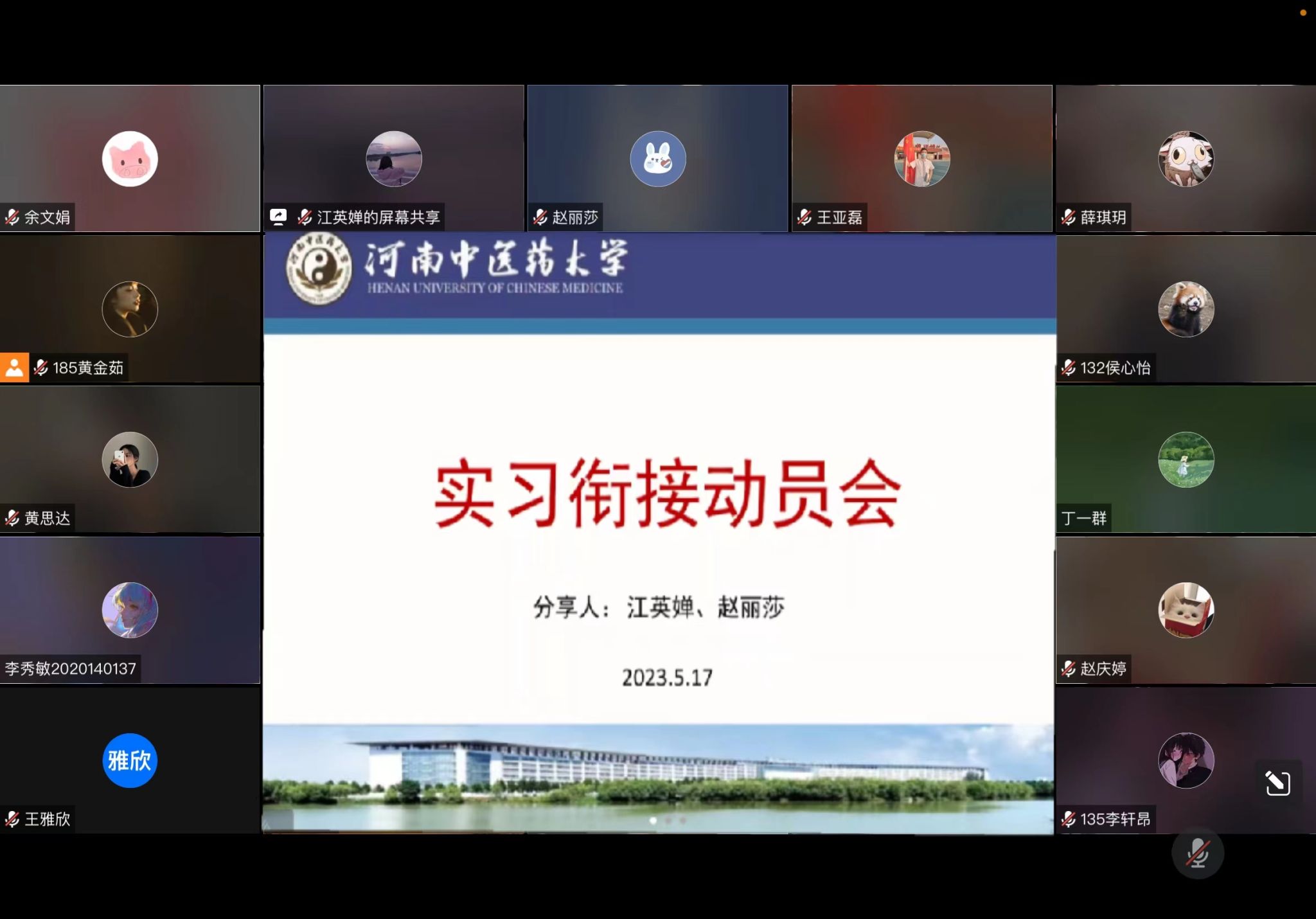 (图/江英婵 文/赵丽莎)2023年5月17日,护理研究生“驻班助研团”通过线上腾讯会议对2020级护理本科二班同学开展了考研实习交流会。本期由“驻班助研团”的2022级护理研究生江英婵和赵丽莎主讲,2020级护理本科二班全体同学参加此次交流会,会议由本科生黄金茹主持。