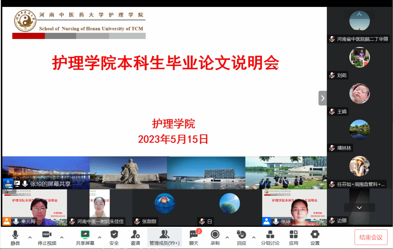 会议中,秦元梅首先传达了万象城awcsport官网《关于2022年河南省本科生毕业论文(设计)抽检专家评议结果反馈的通知》,要求2023届本科生毕业论文必须切实加强过程管控,通过问题整改促进2023届护理本科生毕业论文质量的提升。张琼从护理本科生毕业论文的背景、质量评价、论文抽检情况反馈、论文提交要求等方面对毕业论文中存在的问题对毕业论文中存在的问题进行讲解,督促师生在论文提交的最后阶段高质量完成论文并按时提交。最后,与会师生就论文实施和管理中存在的问题进行了在线答疑。