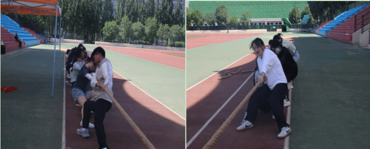 开幕式上,刘玲霞副院长讲话,希望大家放松身心,乐享运动,在运动场上一展风采。随着一声哨响,运动会正式开始。本次趣味运动会由6个比赛项目组成,分别为为两人三足跑、一分钟跳绳、定点投篮、“盲人”足球,夹乒乓球、拔河。参赛的同学们纵情地投入,助威声此起彼伏,气氛热烈而高涨,同学们欢声笑语充满整个操场,跃动的身影形成了一道道美丽的风景线,衬出靓亮的青春。
