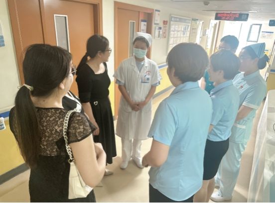 在参观医院特色科室过程中,双方就实习生岗前培训、轮转安排、科室管理、考核等实习生管理工作进行了沟通、交流,并看望了在岗位上的实习生们,对他们的学习和生活情况表示了关心。同学们也一致表示:医院岗前培训到位,带教老师带教认真负责,“手把手”教学,使她们很快适应了临床护理工作,并学习到了许多基本知识和基本技能,她们表示,会以老师们为榜样,继续努力学习,为做一名优秀的护理人而努力。