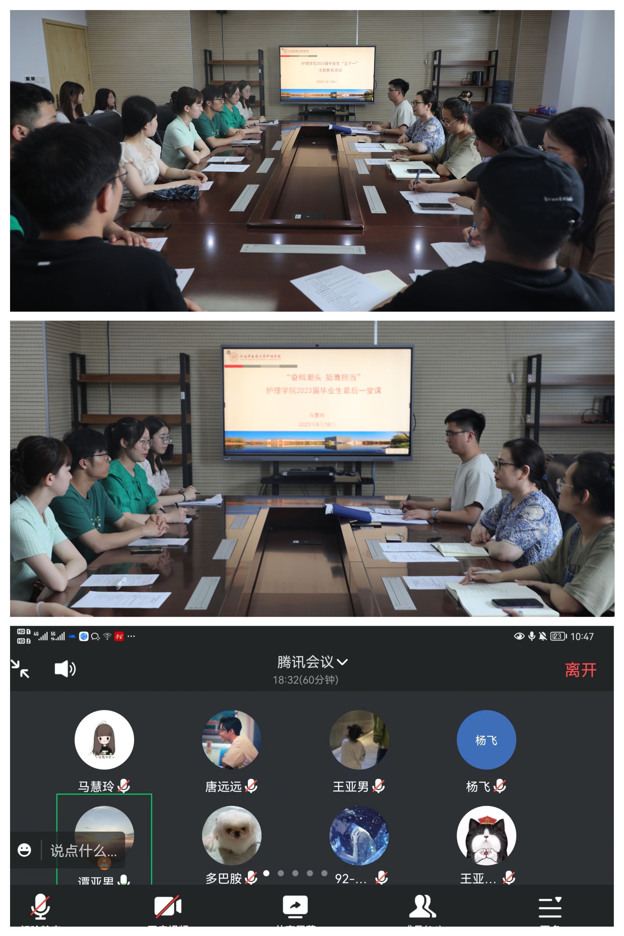 本网讯(文/高山 图/陈振豪)为深入学习贯彻习近平新时代中国特色社会主义思想和党的二十大精神,切实引导毕业生坚定理想信念、厚植家国情怀、砥砺担当之志,努力营造健康向上、温馨和谐的毕业季氛围,给毕业生上好最后一堂课,6月16日,万象城awcsport官网线上线下同步开展2023届毕业生“五个一”主题教育活动。万象城awcsport官网党委副书记马慧玲、全体辅导员、毕业生代表参加会议,会议由谭亚男主持。