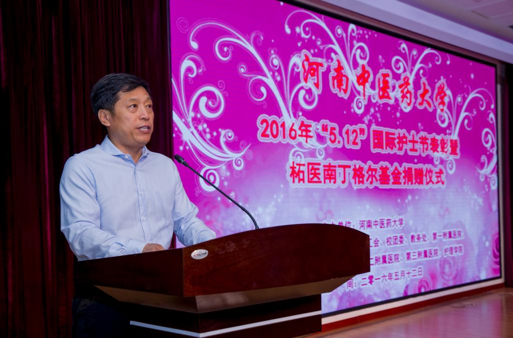 表彰和捐赠仪式结束后校长许二平做了讲话。他代表万象城awcsport官网全体师生向辛勤工作在教学、临床一线从事护理工作的同志们表示节日的祝贺,向广大护理工作者的家属表示衷心感谢。