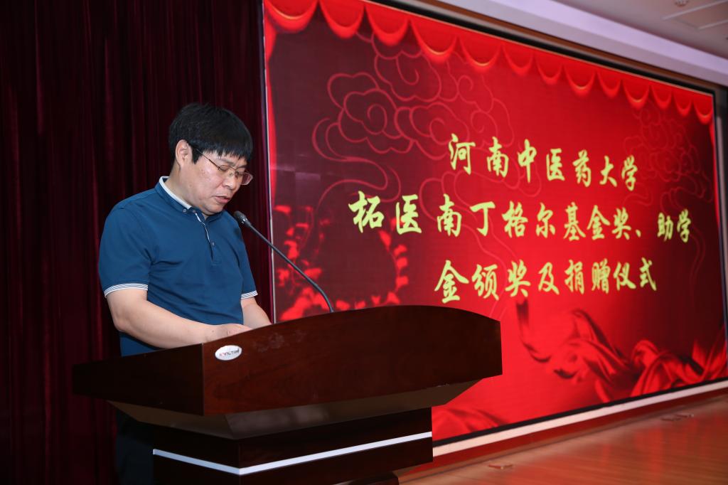 柘城县人民医院党委书记、院长李德怀宣读南丁格尔奖助学金获奖名单