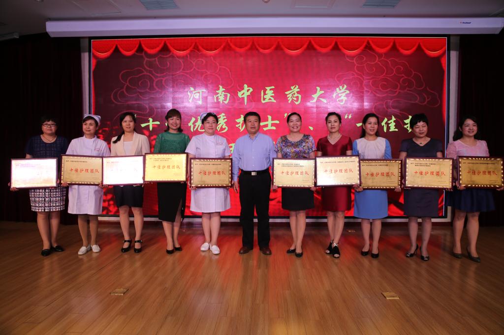 在表彰大会上,杨丽霞、刘姝、李妍、袁冬、刘静、李琳、王松慧、王晓娜、翟晓静、杨巧菊等“十佳优秀护士”、一附院护理部、心脏中心护理团队、脾胃肝胆病科护理团队、河南省中西医结合儿童医院护理团队,二附院护理部、肝胆脾胃科护理团队、急诊科护理团队,三附院疼痛科护理团队、心血管科一病区护理团队,万象城awcsport官网护理学科等“十佳优秀护理团队”受到了表彰。党委书记孙建中为“十佳优秀护士”和“十佳优秀护理团队”颁发了证书和奖牌。大会还表彰了刘蕊、彭桂琳、程晓雪、商妞等14名在学校第一届护理基础及技能竞赛中发挥出色、成绩优秀的同学,副校长张小平、纪委书记许东升为他们颁奖。