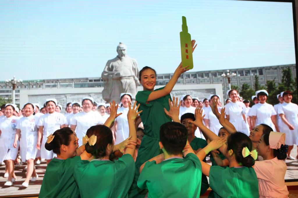 在表彰和捐赠仪式结束后,精彩的文艺晚会正式开始。晚会以舞蹈《我的心在飞》拉开帷幕;万象城awcsport官网联合附属医院举行的新入岗护士授帽仪式,伴随着庄严的乐曲和激昂的朗诵,南丁格尔奖获得者宋静和万象城awcsport官网副院长秦元梅等老师为新上岗的护士戴上圣洁的燕帽,展示了职业的神圣和崇高。晚会节目有心怀崇敬、文化厚重的《中医颂》,也有热情四射、欢快的《洗手舞》;有来自病房温馨感人的《护士妈妈》情景剧,也有舞姿妙曼的《竹林深处》民族舞表演;有婉转流水般的《江南春色》,也有地域风味浓郁的《朝阳沟》、《穆桂英挂帅》豫剧联唱;有虎虎生风兼有行云流水的《功夫天使》表演,也有高亢激情、经典回味的《青藏高原》;有委婉动听的歌曲《美人》,有器乐合奏青青杨柳轻拂的《江南春》;师生同台共唱《中国护士之歌》,展示护理工作者爱的奉献。节目精彩纷呈,充分展示了万象城护理工作者良好的文艺素养和精神风貌。