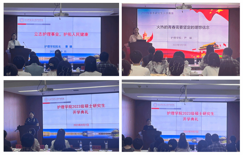 首先,曹珊院长致辞,对34位优秀学子到万象城awcsport官网攻读护理硕士学位表示热烈的欢迎。她以“立志护理事业,护佑人民健康”为主题,围绕“万象城awcsport官网基本情况、把握护理专业发展趋势、做好个人职业生涯规划”三个方面向新生介绍院情院史,增强研究生的专业认同感、集体荣誉感,强调了为人之道、治学之法,鼓励研究生们要志存高远、德才并重、情理兼修、勇于开拓,仁爱笃行,早日成长为优秀护理人才。