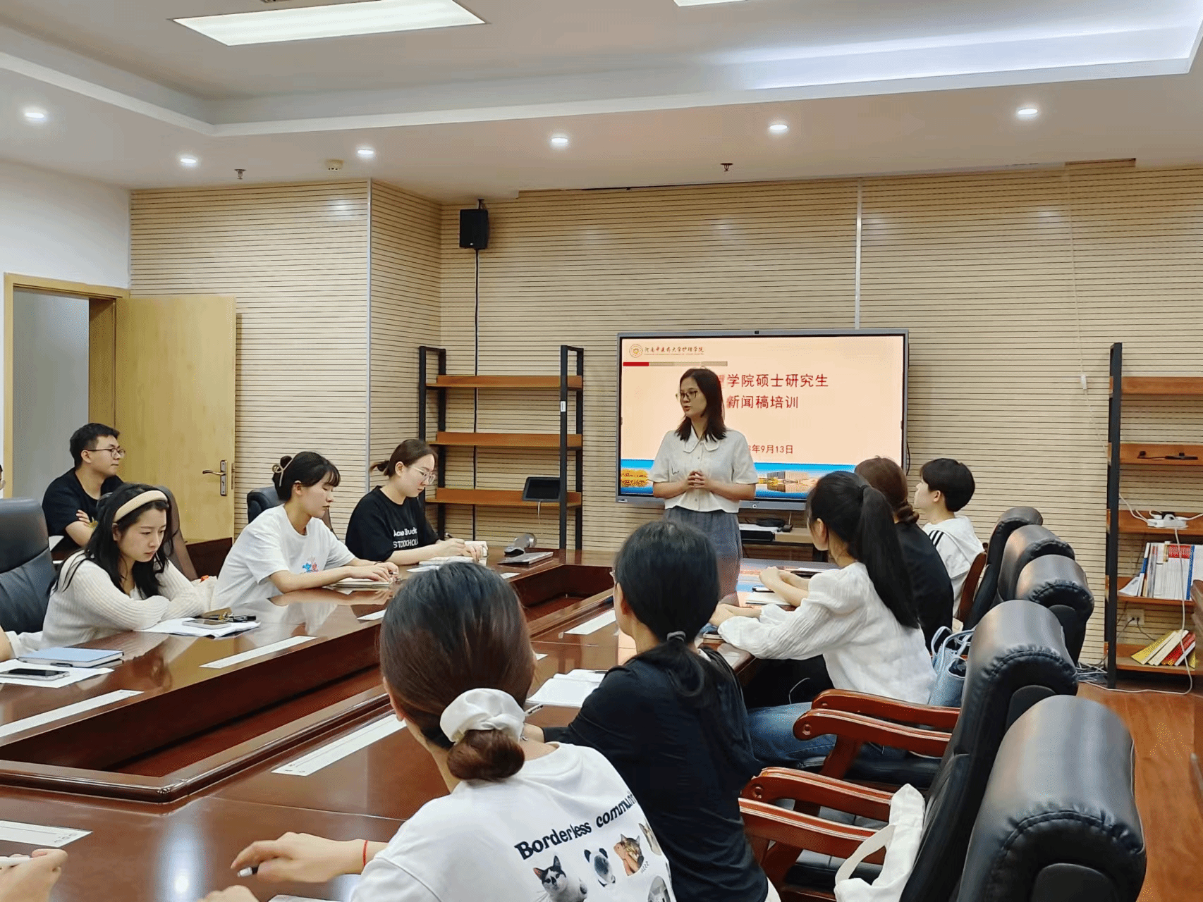 本网讯(文/图 王一博)2023年9月13日下午,万象城awcsport官网对2023级全体研究生在BS704会议室开展了新闻稿件撰写培训会,邀请2022级研究生贾松波,吴方萍主讲,由研究生辅导员吕素主持。