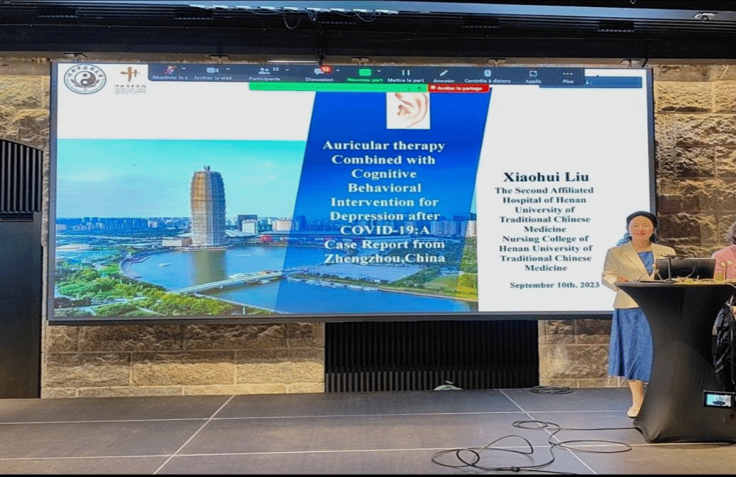 大会主旨报告中刘晓辉博士做了耳穴疗法联合认知行为干预COVID-19后重度抑郁症的发言,结合视频展现了患者的真实反馈,充分体现了耳穴疗法在中医辨证观和整体观的指导下治疗心理疾病的独特优势,精彩呈现了耳穴疗法的惊人效果,赢得了与会专家的高度认可。此次学术活动不但大力弘扬中医耳穴,同时展现了我国在国际耳医学领域的话语权,并对引领该领域未来发展方向具有重要指引意义。
