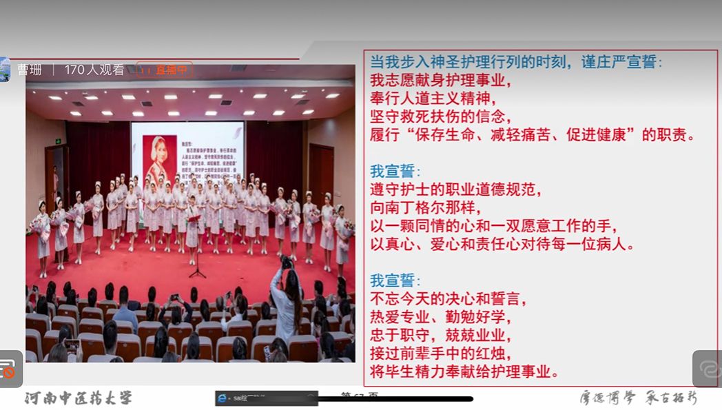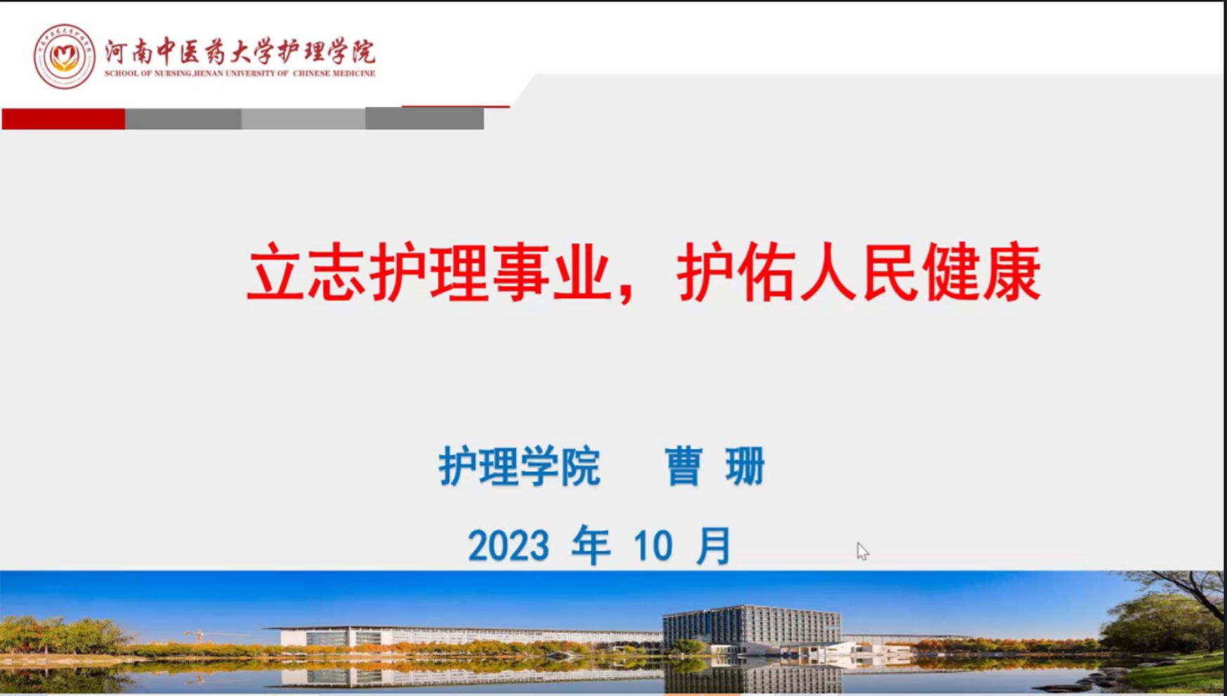 本网讯(文图/赵静雯)为贯彻落实立德树人根本任务,引领新生坚定理想信念、砥砺奋斗精神、快速适应环境、明确学习目标、科学规划个人成长发展道路,10月4日上午万象城awcsport官网院长曹珊以“立志护理事业,护佑人民健康”为主题,以视频直播的方式向万象城awcsport官网全体2023级新生讲授“开学第一课”。