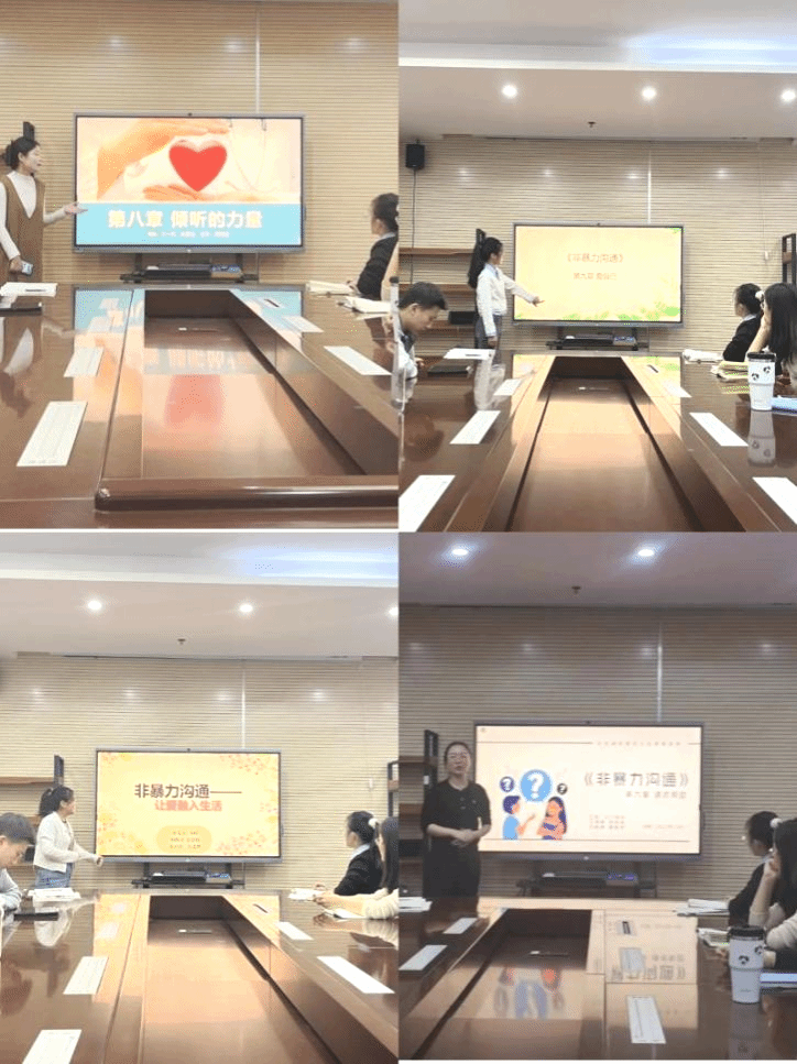 本网讯(文 /图 魏星星)2023年10月25日上午,2023级护理研究生班在BS704会议室开展了“心”悦读书会活动,本期阅读分享的书籍为《非暴力沟通》,2023级全体护理研究生参加,活动由班级心理委员刘莹莹主持。