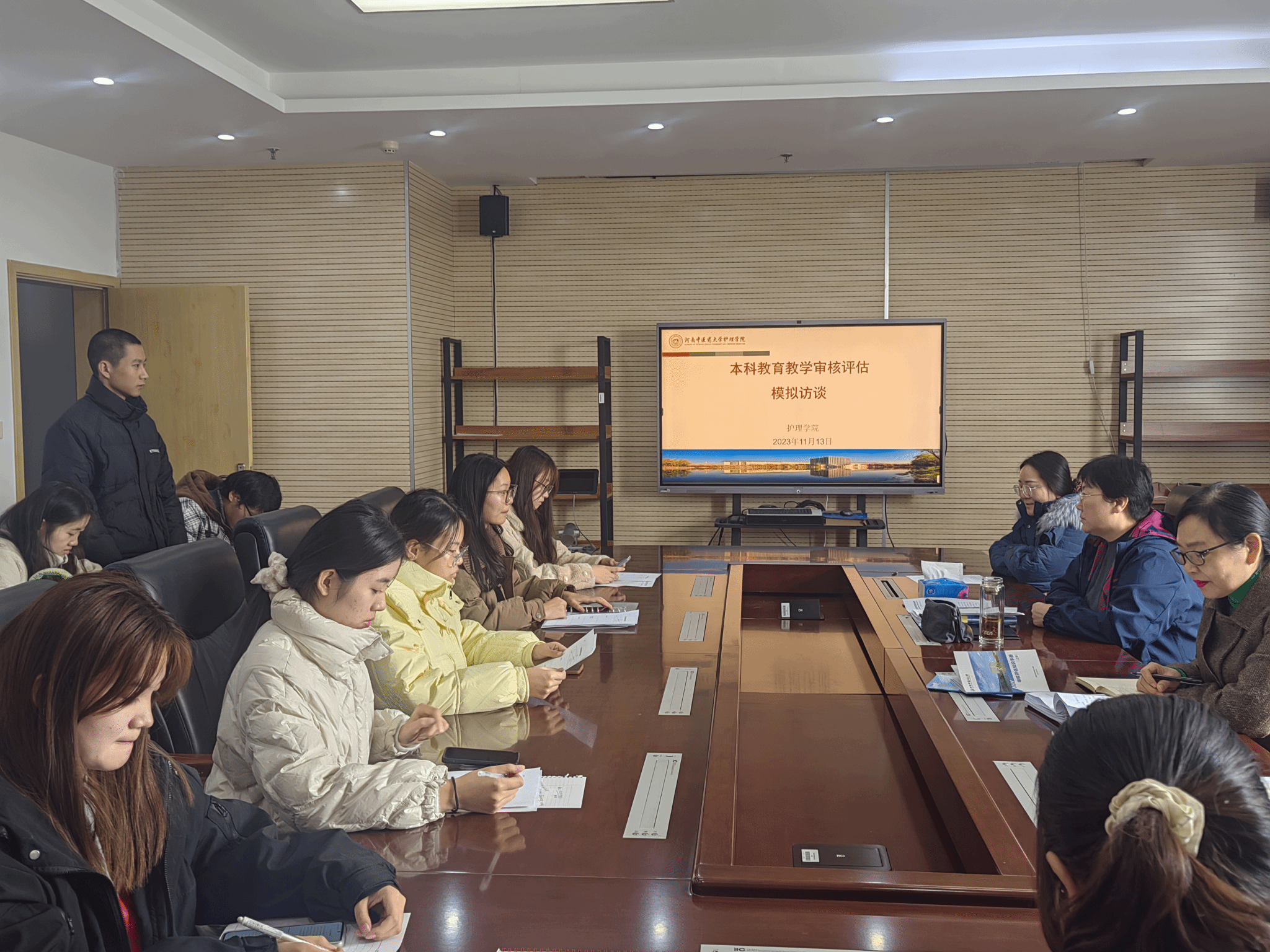 11月13日中午,学院在BS704会议室组织召开审核评估模拟访谈。马慧玲副书记、秦元梅副院长、教学办、学工办负责老师,各班学生代表、教学信息员参加活动。会上,马慧玲首先传达了学校审核评估工作要求,强调说明开展模拟访谈的意义。学工办谭亚男领学了审核评估知识,巩固强化学习效果。秦元梅对模拟访谈的必要性作了进一步讲解,围绕教育教学相关问题,逐一向参会学生进行提问。同学们认真回答,针对问题畅谈了学习生活情况以及对审核评估工作的感受和建议。学院领导老师结合同学们的表现,进行了耐心的教育引导。