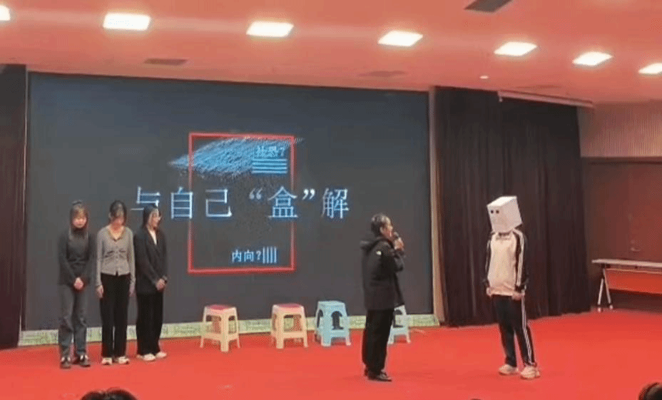 每一颗星星都应该闪亮,每一份理解都值得等待。《与自己“盒”解》是“南丁格尔”实验班参赛人员用心编写的剧本。聚焦社交焦虑,展现了极度社恐女生王静主动求助老师,在老师帮助下正确认知自我,更加自信勇敢的故事。排练过程中,参演同学们不断打磨角色细节,揣测人物心理,力求还原大学生真实心理状态,展现了学生朝气蓬勃、奋发向上的精神面貌。