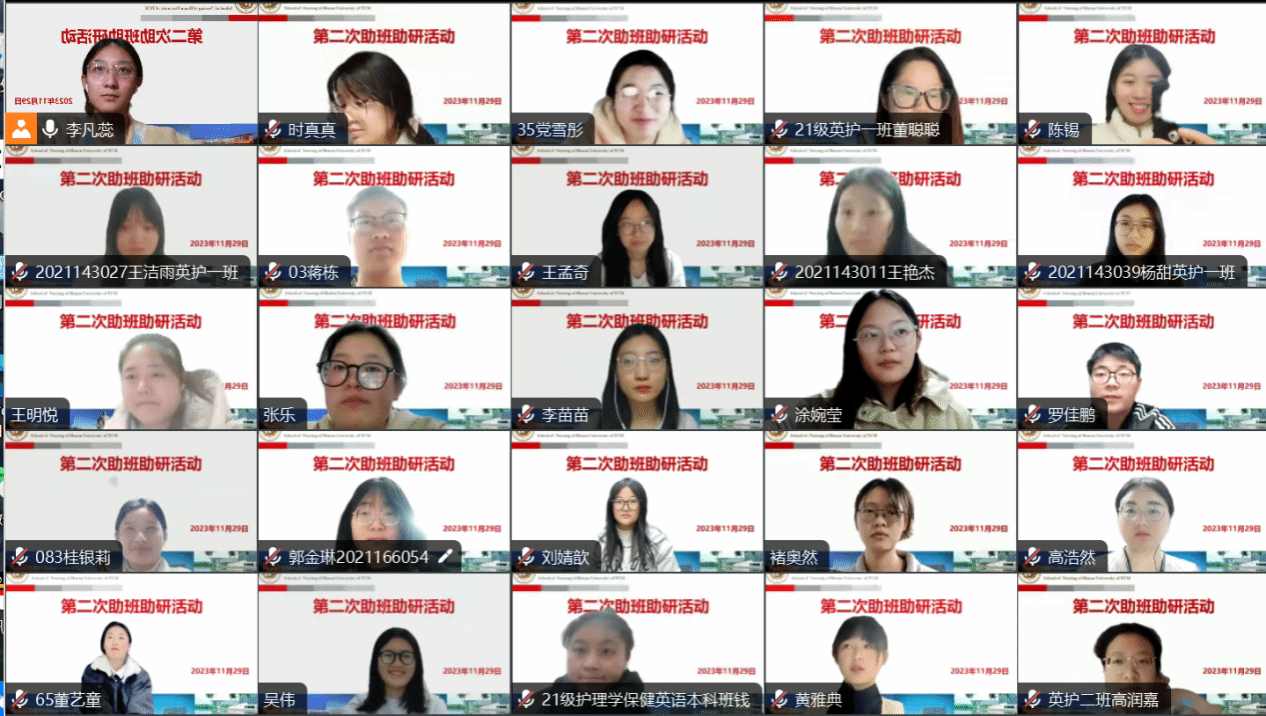 本网讯(文/李苗苗 图/李凡蕊)2023年11月29日,护理研究生“驻班助研团”在腾讯会议对2021级护理学(保健英语)一班全体同学开展了考研交流会。本期由“驻班助研团”的2023级护理研究生高浩然、段淑婷、关家怡、李苗苗主讲,交流会由2023级研究生李凡蕊、杜文静主持。