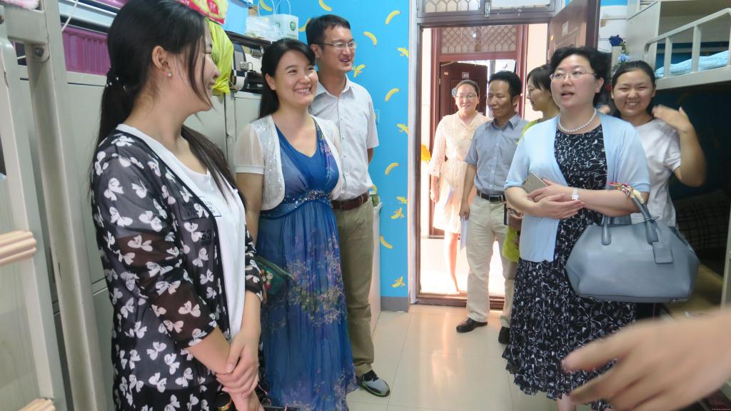 在宿舍检查中,学院领导以及全体辅导员一一走访宿舍,与同学们亲切交流。当看到学生宿舍卫生整齐,学生接待礼貌时,领导和老师对学生给予赞扬,希望同学们再接再厉,做好宿舍卫生。在检查中,尹丽向学生们强调以下几点:一要注意用电安全。夏季炎热干燥,易发火灾,切勿在宿舍里使用违规电器,以防危险发生;二要注意饮食卫生,少食生冷瓜果;三要注意宿舍卫生,为自己提供一个舒适、健康的生活环境;四要注意人身财产安全。要注意宿舍安全,关好门窗,暑假快到了,外出游玩注意交通安全和人身财产安全。
