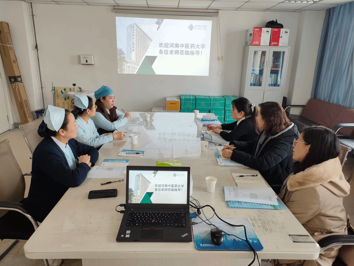 郑州市第九人民医院是全国首批“老年友善医院”、国家老年疾病临床医学研究中心“老年医疗照护培训基地”和“协同网络基地单位”,也是特色行业学院主要成员单位。护理部周娜主任,老年医学中心三病区王珊珊护士长、姑息(缓和)治疗暨安宁疗护中心司慧彬护士长进行交流。周娜主任首先介绍了第九人民医院的概况及特色,之后,两名护士长分别介绍了老年医学中心三病区创口护理的开展情况、医院姑息(缓和)治疗暨安宁疗护的特色、患者出入院情况。随后大家一起讨论了智慧康养护理行业学院的“老年护理学”课程建设问题,就建设内容、形式、特色等展开热烈讨论。