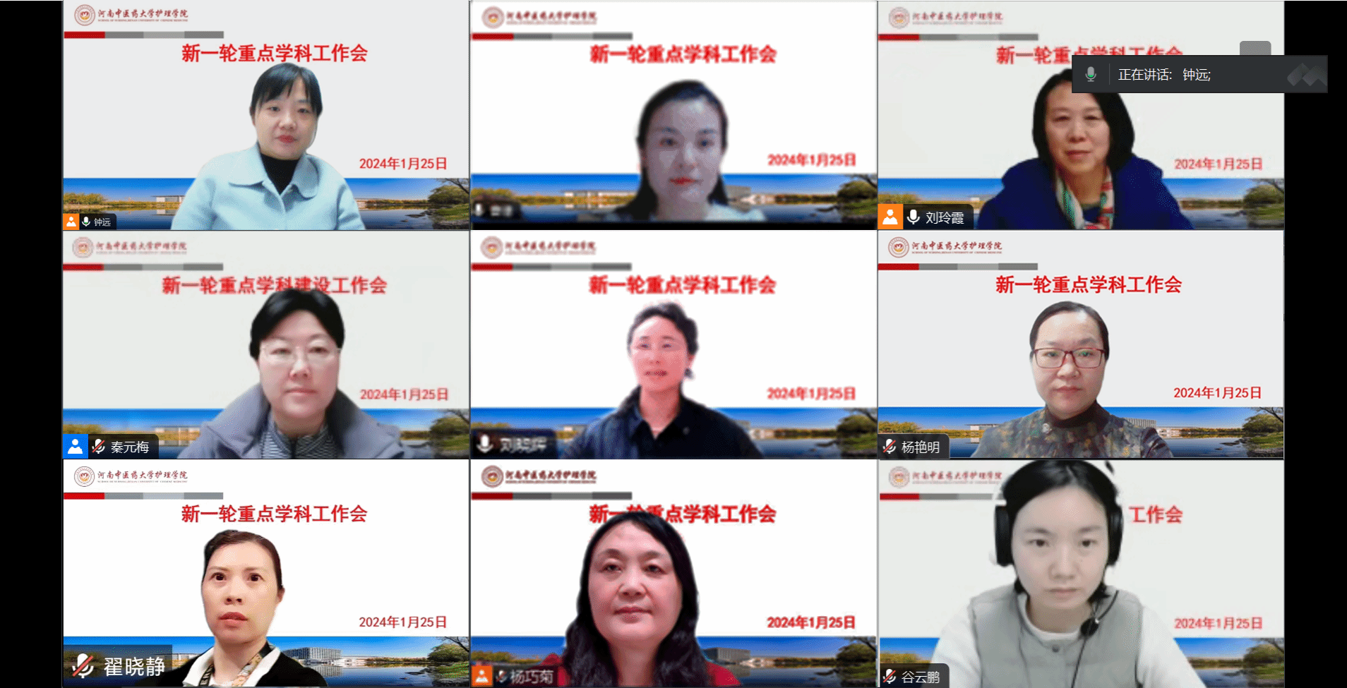 本网讯(文/钟远 图/李娅楠) 2024年1月25日19:00,万象城awcsport官网新一轮河南省重点学科建设工作会议以腾讯会议线上形式举行。护理学新一轮河南省重点学科学科带头人、学科方向带头人和各个方向的团队成员参加了会议,会议由刘玲霞副院长主持。