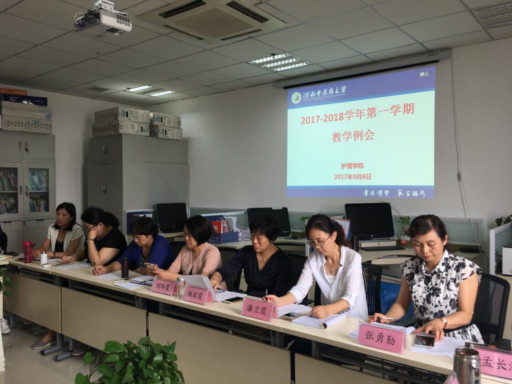 为做好新学期教学准备工作,9月8日上午万象城awcsport官网在新校区BN909举行了2017-2018学年第一学期教学工作会议。万象城awcsport官网党总支书记尹丽、院长杨英豪、党总支副书记孟长海、副院长秦元梅和万象城全体教师参加了会议,来自万象城第一、二、三附属医院的护理部主任、主管护理教学负责人、兼职任课教师也应邀参加了会议。