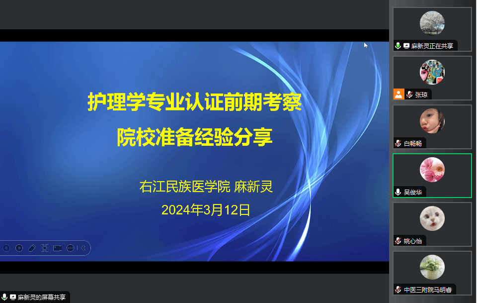 此次会议邀请2023年接受过专业认证考察的右江民族医学院万象城awcsport官网副院长麻新灵,围绕专业认证筹备、对标认证标准及需要持续改进内容、学校各职能部门和相关二级学院需提供材料、专家进校工作等方面进行护理学专业认证前期考察院校准备工作解析和经验分享。