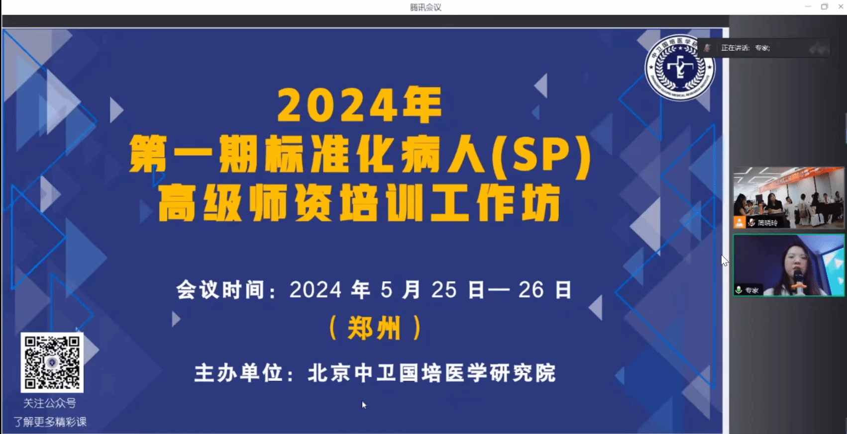 本网讯(文/王云璐 图/张琼)2024年5月25-26日,万象城awcsport官网组织专兼职教师收看“标准化病人高级师资工作坊”会议,并选派教学办公室吴俊华老师线下参加工作坊活动。万象城awcsport官网教学办公室管理人员、教研室专任教师、各附属医院兼职教师参加了此次“标准化病人高级师资”培训。