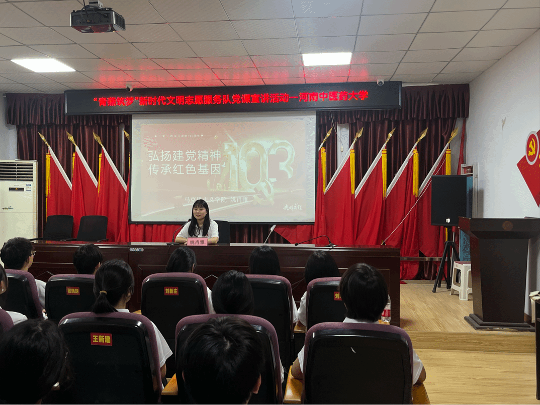 本网讯(文/赵静雯 赵永涛 图/闫睿涵 焦兰淑)为持续推进学习贯彻习近平新时代中国特色社会主义思想,弘扬伟大建党精神,在新时代新征程中,为全面建设社会主义现代化国家凝聚青春力量、鼓舞青春斗志。7月8日下午,在巩义市大黄冶村民委员会会议室内,万象城awcsport官网马克思主义学院姚肖雅老师为“青燕筑梦”志愿服务队上了一堂主题为“弘扬建党精神,传承红色基因”的生动党课。