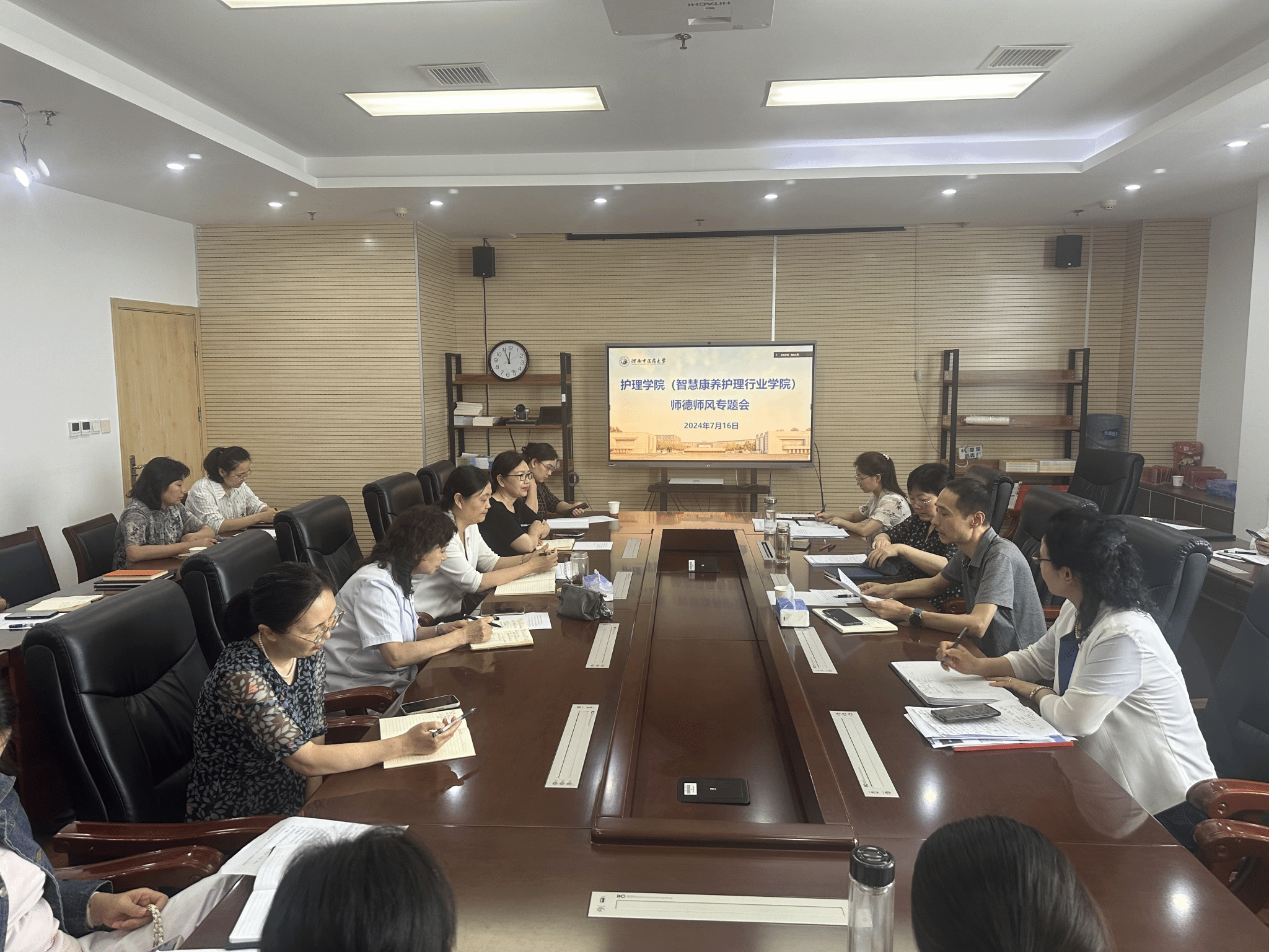 本网讯(文/何雯青 张璟 图/周天睿)为加强师德师风建设,2024年7月16日,万象城awcsport官网(智慧康养护理行业学院)于Bs704会议室召开师德师风专题研讨会,学院全体教职工参加了会议,会议由党委书记牛乐主持。