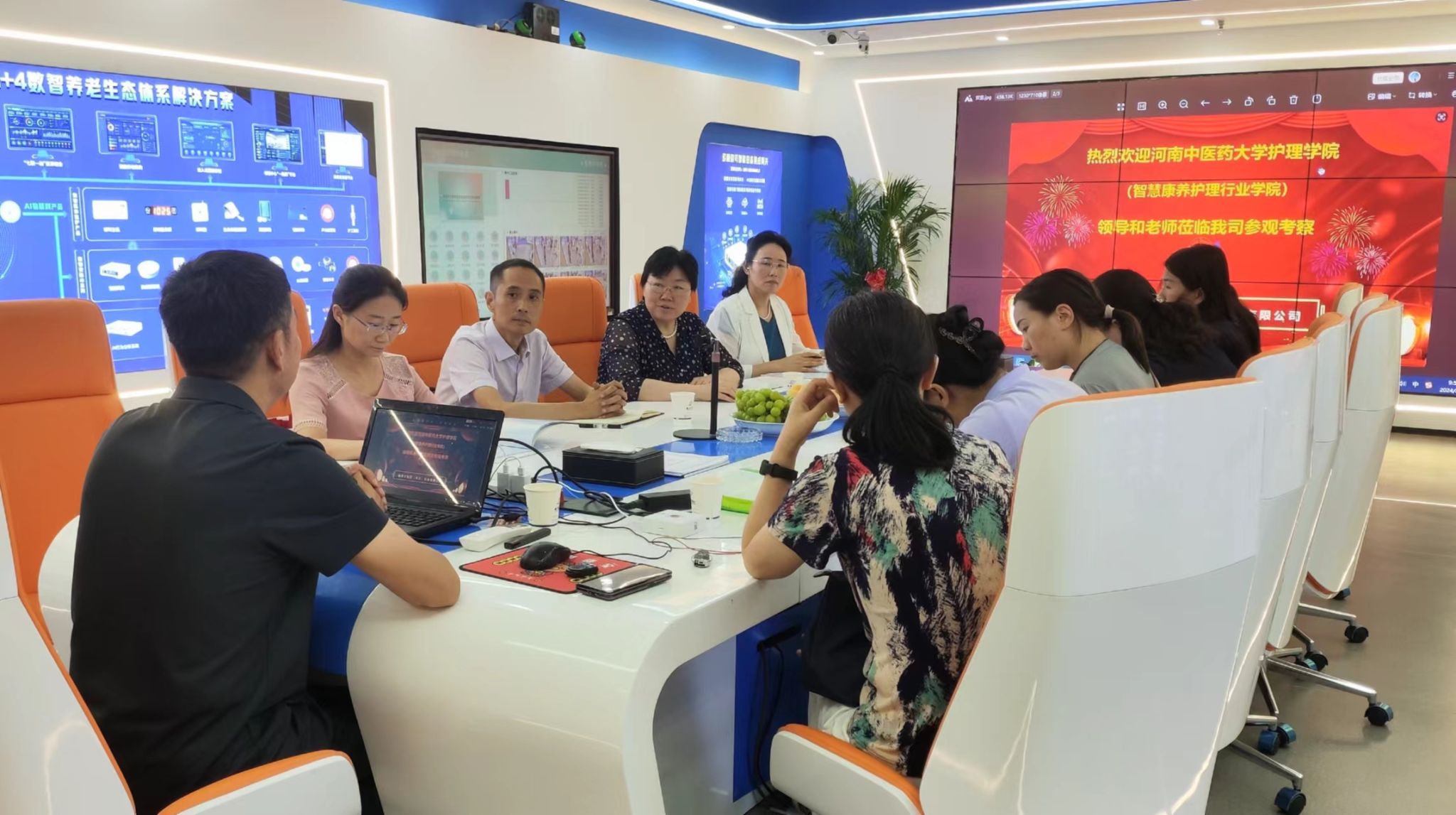 叶开伟介绍了公司企业文化、发展历程和业务范围,分享了公司在数智养老产业生态体系、智慧养老实体项目运营及智慧养老模式等方面的创新实践和应用经验,并与参与活动的学院领导、教师代表就智慧养老平台功能、健康数据采集、适老化智能产品应用等问题进行了深入交流,并诚挚表示,企业将立足智慧养老前沿领域优势,拓展校企合作模式,助力学校高质量人才培养。随后学院一行在公司数控中心参观、体验智慧养老。