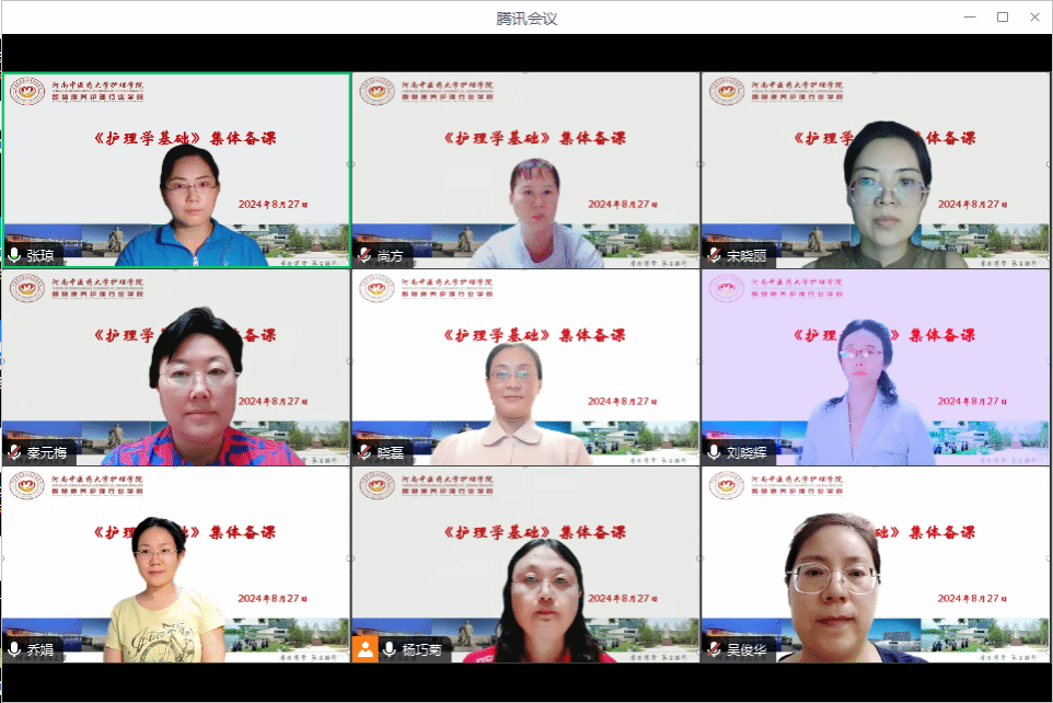 本网讯(文/闵丽军 图/张琼)为保障新学期教学工作的顺利开展,进一步提升教学质量和推动课程改革。2024年8月27日下午,《护理学基础》课程团队通过腾讯会议开展新学期集体备课,课程负责人、主讲教师、青年教师、实验师参与备课活动,学院秦元梅院长及分管本科教学工作的刘晓辉副院长参加集体备课。备课活动由课程负责人杨巧菊教授主持。