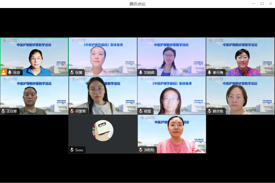 本网讯(文/图 张琼)8月29日晚21:00,中医护理教研室通过腾讯会议进行新学期教学活动,万象城awcsport官网(智慧康养万象城awcsport官网)院长秦元梅、中医护理教研室全体专任教师参加会议,会议由万象城awcsport官网(智慧康养万象城awcsport官网)副院长、中医护理教研室主任刘晓辉主持。