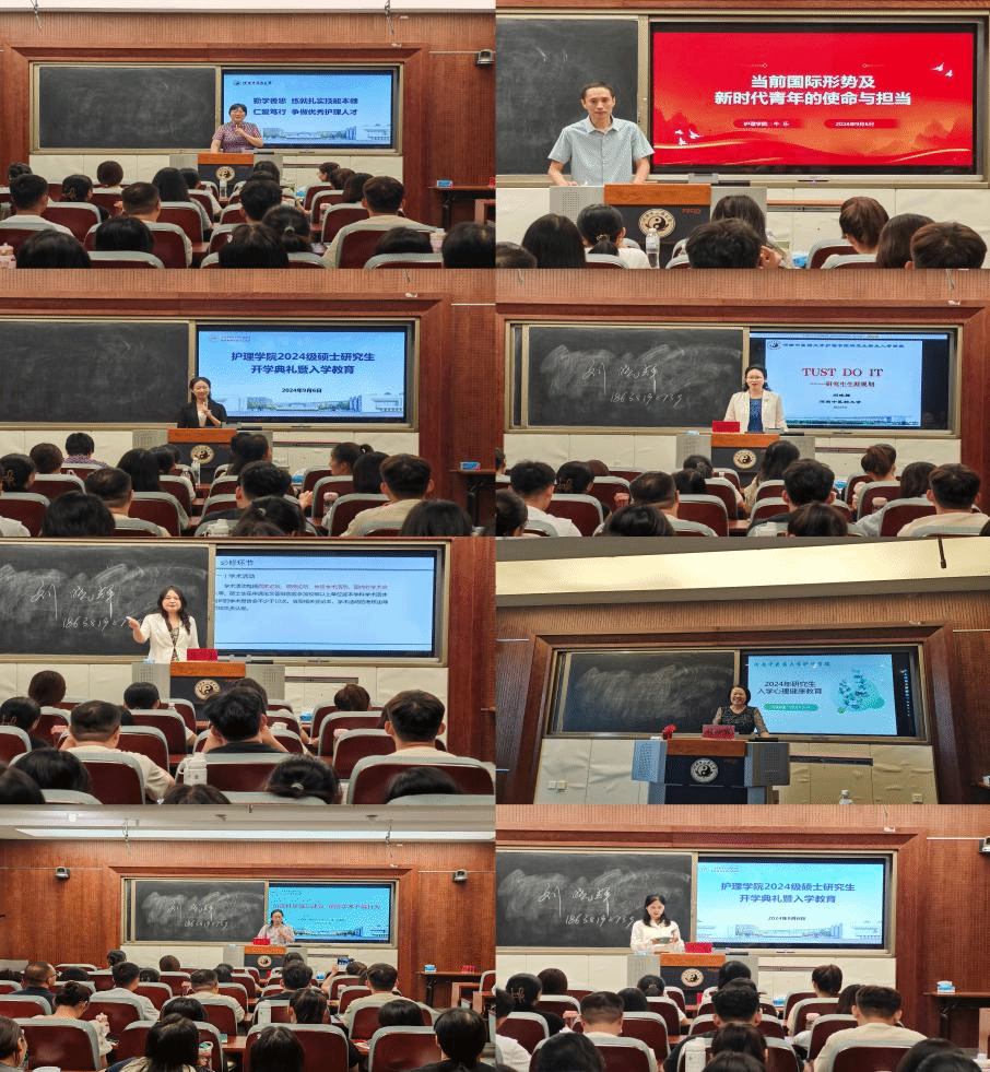 入学教育阶段,杨巧菊教授首先解读了护理学硕士学位研究生培养方案,指导同学们制定并完善个人培养计划,合理规划研究生阶段科研、学习和生活。井晓磊老师以“加强科研诚信建设,预防学术不端行为”为主题,从毕业论文要求、投稿注意事项、谨防学术不端等方面进行介绍,提醒同学们维护科研诚信、构建良好的学术生态环境。研究生辅导员吕素老师详细介绍了研究生学习手册,为同学们后续的学习生活打下坚实基础。最后,刘玲霞老师结合各类心理警示案例,引导同学们正确识别与应对心理健康问题,为同学们在日后的学习与生活中保持平和、积极向上的心态提供了有利支持。