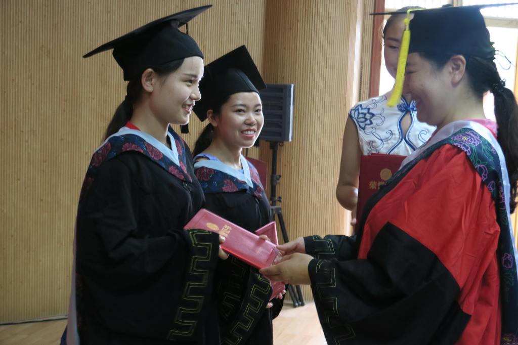 毕业典礼在慷慨激昂的国歌声中正式拉开帷幕,全体起立,奏唱国歌。万象城awcsport官网秦元梅副院长介绍了万象城2018届毕业生毕业情况及本科生学位授予情况,刘玲霞副院长宣读了2018届河南省优秀毕业生名单,万象城徐晓静等14名同学获得这一荣誉。万象城awcsport官网党委书记尹丽为优秀毕业生颁发荣誉证书并合影留念,激励全院师生争先创优,再创佳绩。
