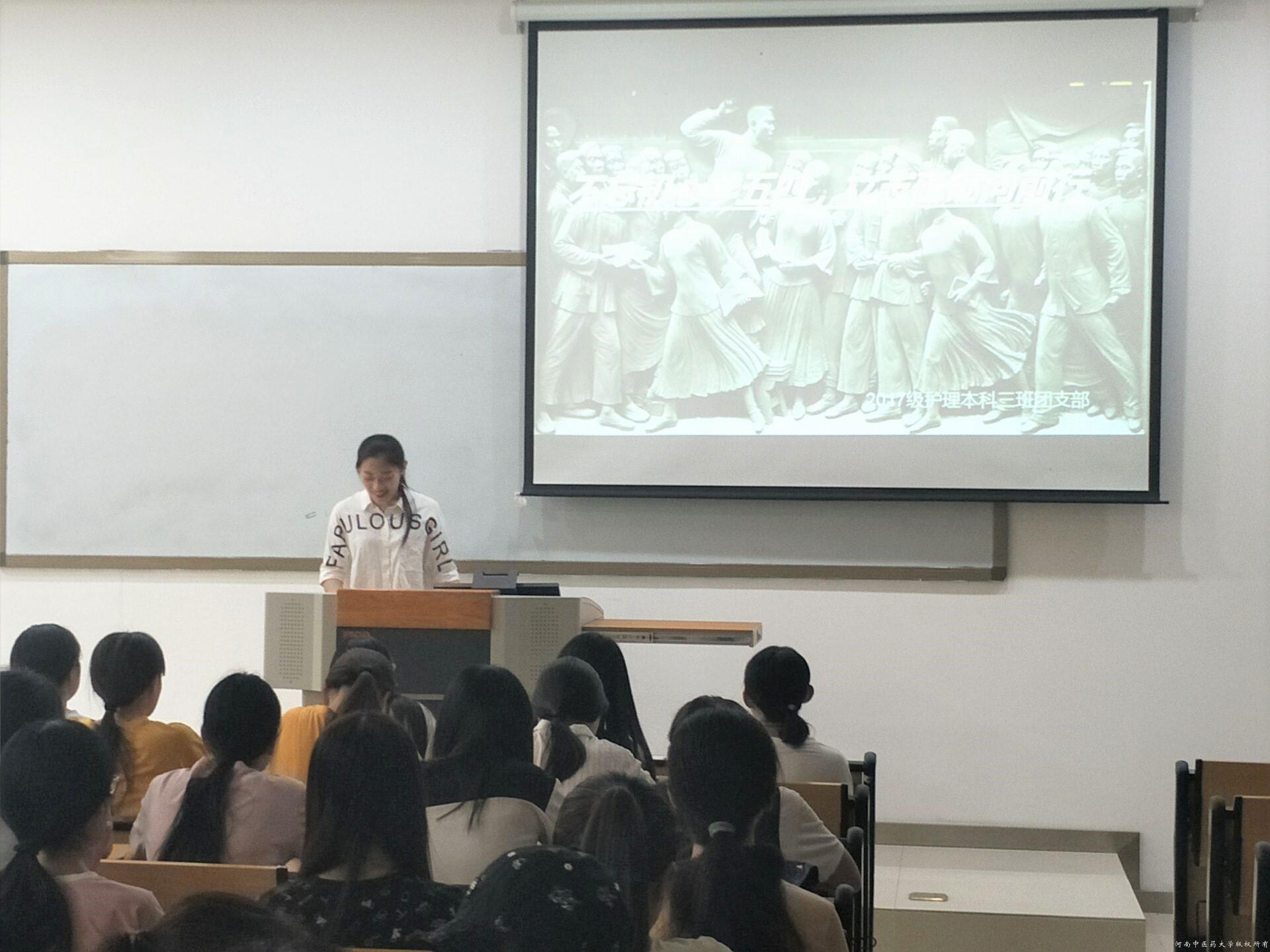 在本次活动中,万象城awcsport官网各团支部都展现出高度的积极性,努力配合,细心策划,采取班会、诗歌朗诵、观看影片、主题征文等多种多样的活动形式,不仅丰富了学生课余生活,更促进了学生感情交流,受到一致好评。17级专升本一班,团支书为同学们讲解五四运动的由来并请同学上台分享自己关于五四精神的理解;16级护本二班的同学则是共同在教室绘制团报,并在团报上写下“不忘初心,砥砺前行”;15级护本一班的同学通过观看“习近平总书记五四讲话”视频,书写观后感来学习五四精神。这些活动广受同学们的认可,现场互动氛围也十分好,效果出众。在活动中,同学们细心准备,畅所欲言,讲述自己作为新一代青年对这种不忘初心,砥砺前行的理解。