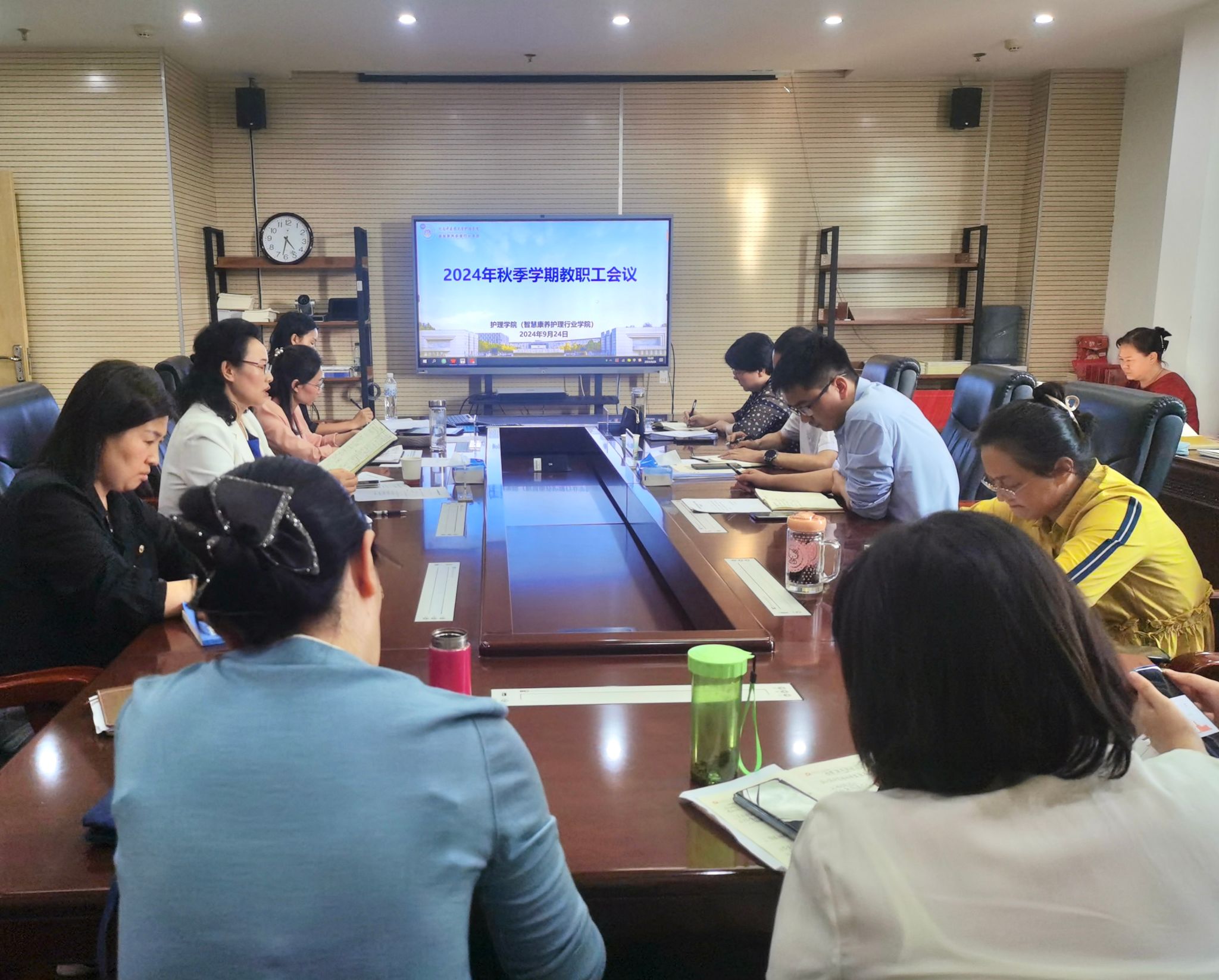 本网讯(文/图 何雯青)2024年9月24日下午,万象城awcsport官网(智慧康养护理行业学院)在BS704会议室召开了2024年秋季学期教职工会议。万象城awcsport官网党委书记牛乐、院长秦元梅、副书记杨雪、副院长刘晓辉及全体教职工出席会议,会议由刘晓辉副院长主持。