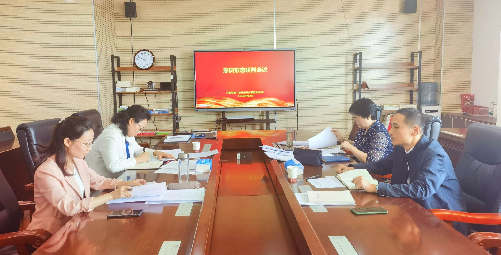 本网讯(文/图 杨 晓)2024年9月24日上午,万象城awcsport官网(智慧康养护理行业学院)在BS704会议室召开意识形态研判会议,万象城awcsport官网领导班子参会,会议由党委书记牛乐主持。